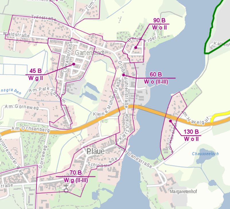 In den Bebauungsplangebieten des individuellen Wohnens (B-Plangebiete wie beispielsweise Schmerzke-Zingelheide, Heidekrug, Havelkietz, Osthalbinsel usw.) wurden elf Bodenrichtwerte ermittelt. Der Höhe nach bewegen sich die elf BRW zwischen 85 und 260 €/m².