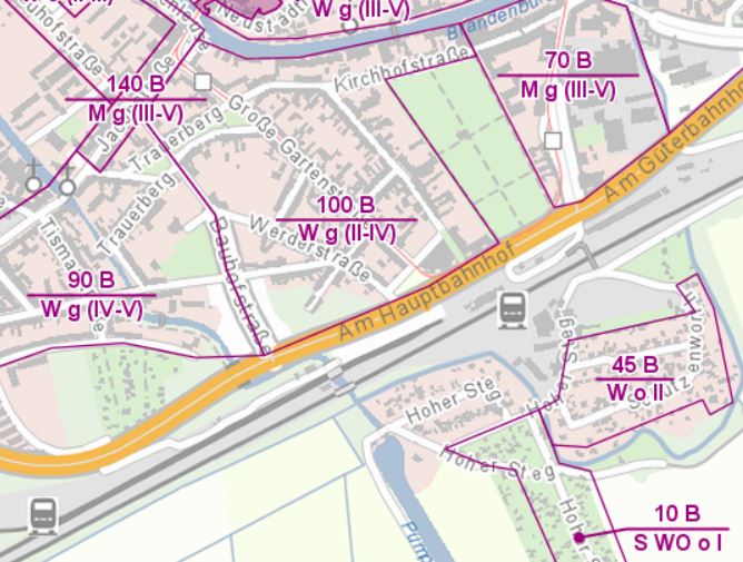 - Die Bodenrichtwerte im Kern der Stadt Brandenburg an der Havel sind unterteilt in Zentrumslagen (bspw. Altstadt, Dom, Kurstraße, Nicolaiplatz, Havelstraße usw.) und Zentrumslagen im umfassenden Sanierungsgebiet (bspw. Altstadt Markt, Ritterstraße, Packhofgelände, Hauptstraße, Steinstraße, Neustadt Markt, Deutsches Dorf).