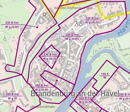 Die BRW für Wohnbauflächen des Mietwohnungsbaus liegen zwischen 70 und 230 EUR/m². - In der Stadt Brandenburg an der Havel werden vier BRW-Zonen für Mischgebiete (Neuendorfer Straße, Geschwister-Scholl-Straße, Jacobstraße, Potsdamer Landstraße) zum Stichtag 01.01.2023 geführt. Die zum Stichtag ermittelten BRW liegen in einem Bereich von 55 bis 250 EUR/m² (≙ Steigerungen von 9 bis 36 %).