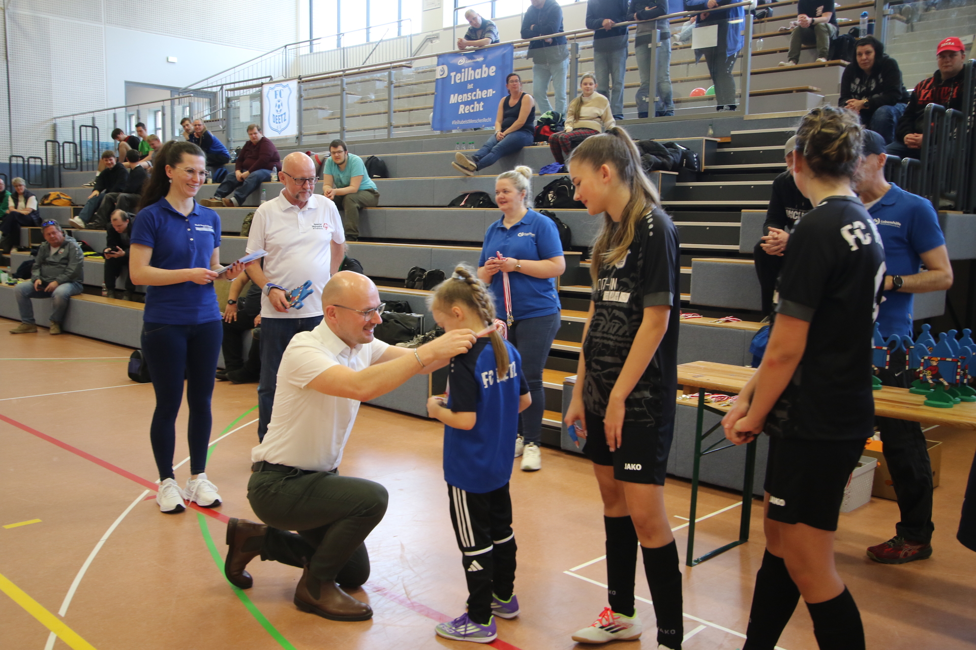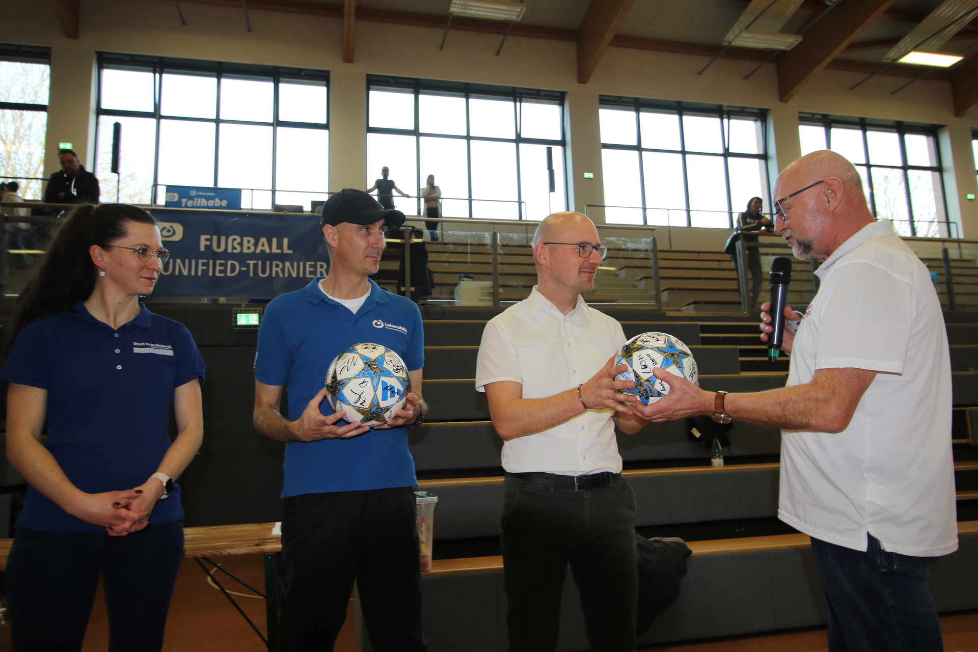 Am Samstag hat die Lebenshilfe Brandenburg – Potsdam e.V. mit dem Special Olympics Deutschland in Brandenburg e.V. den 2. Brandenburger Hallencup im Unified-Fußball ausgerichtet. Zwölf inklusive Mannschaften spielten in der Dreifelder-Sporthalle am Marienberg um Punkte. Mit dabei waren der neue und alte Oberbürgermeister Steffen Scheller und Daniel Keip sowie die Sportbeigeordnete Alexandra Adel.