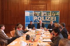 Innenminister Dr. Dietmar Woidke stellte heute der Oberbürgermeisterin, den hauptamtlichen Bürgermeistern, Amtsdirektoren und dem stellvertretenden Landrat von Potdam-Mittelmark die geplante Struktur der Polizei des Schutzbereiches Brandenburg vor.