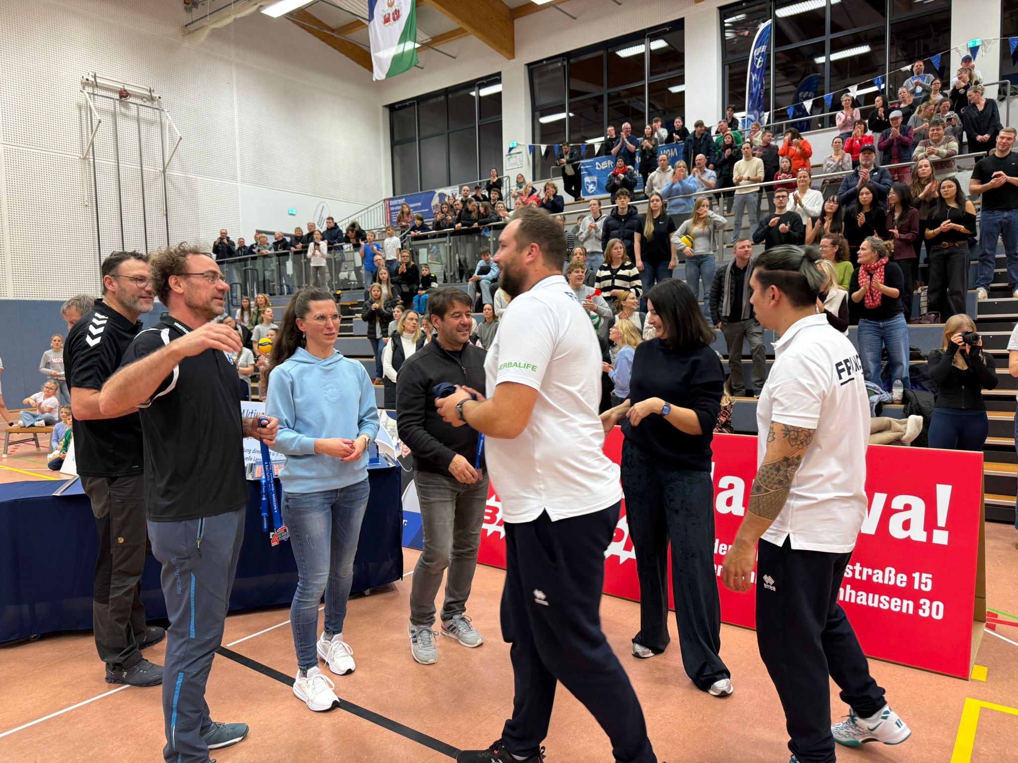 Für das deutsche Team standen mit Malte Förster und Kajus Kleiner zwei ehemalige Spieler des Volleyballclub Blau-Weiß Brandenburg auf dem Parkett. Die Ränge waren zumeist mit 400 bis 500 Zuschauerinnen und Zuschauern gut besucht. Am Donnerstag besuchten ganze Klassen das Turnier.
