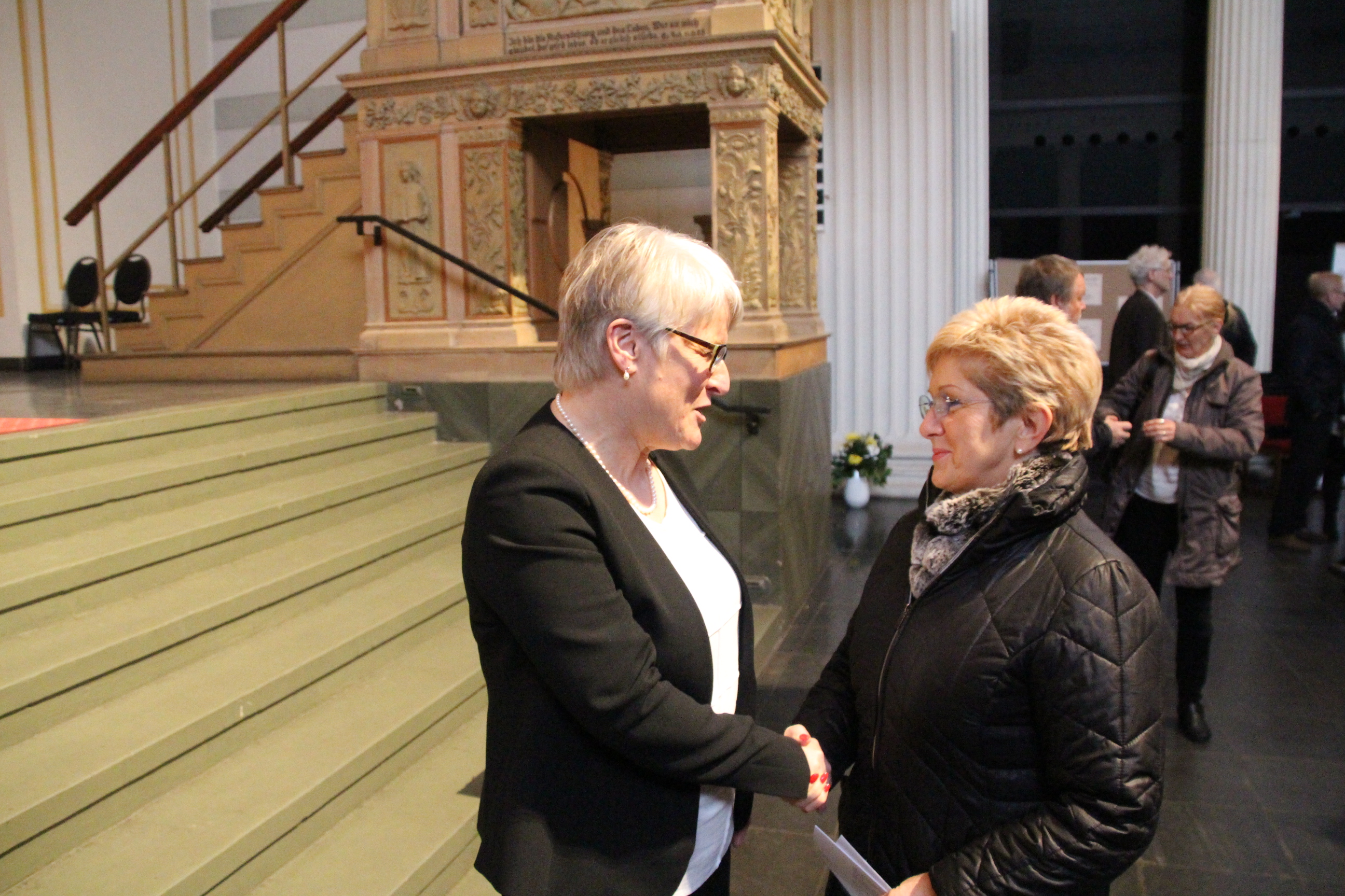 Oberbürgermeisterin Dr. Dietlind Tiemann gratulierte heute Pfarrerin Friederike Pfaff-Gronau, die in der Potsdamer Nikolaikirche in ihr Amt als Theologischer Vorstand der LAFIM-Gruppe eingeführt wurde.