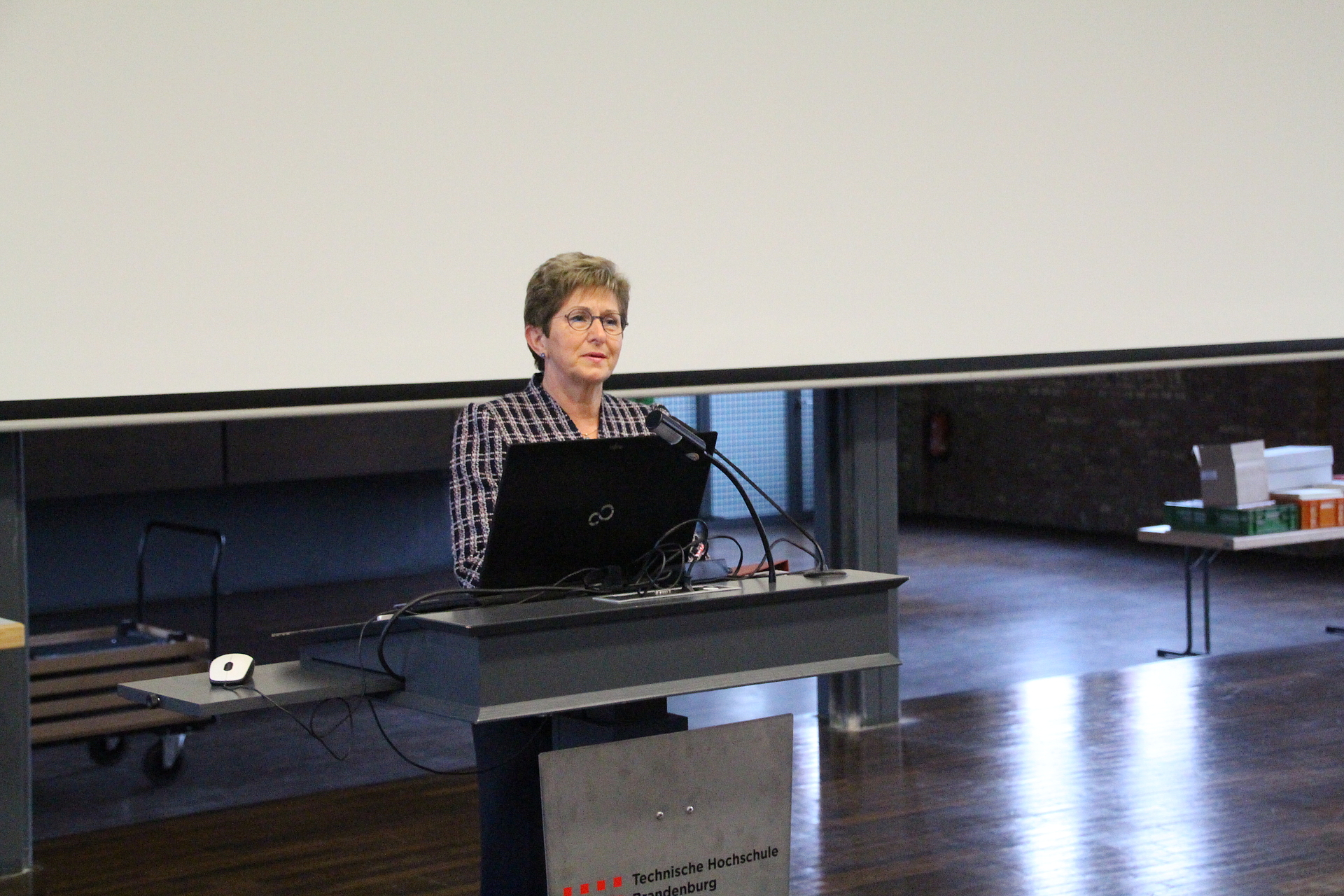 Begrüßt wurden die Landesarchäologen von der THB Präsidentin Prof Dr.-Ing Wieneke-Toutaoui, Oberbürgermeisterin Dr. Dietlind Tiemann, Karin Melzer, Referatsleiterin des MWFK und Prof. Dr. Franz Schopper, Direktor des Brandenburgischen Landesamtes für Denkmalpflege und des Archäologischen Landesmuseums.