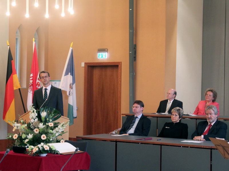 Als Festredner konnten die Brandenburgerinnen und Brandenburger im Rolandsaal des Altstädtischen Rathauses den neuen Präsidenten des Landesverfassungsgerichts Jes Möller begrüßen, der sich bei dieser Gelegenheit in das Goldene Buch der Stadt eintrug.