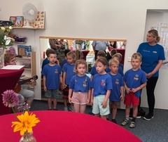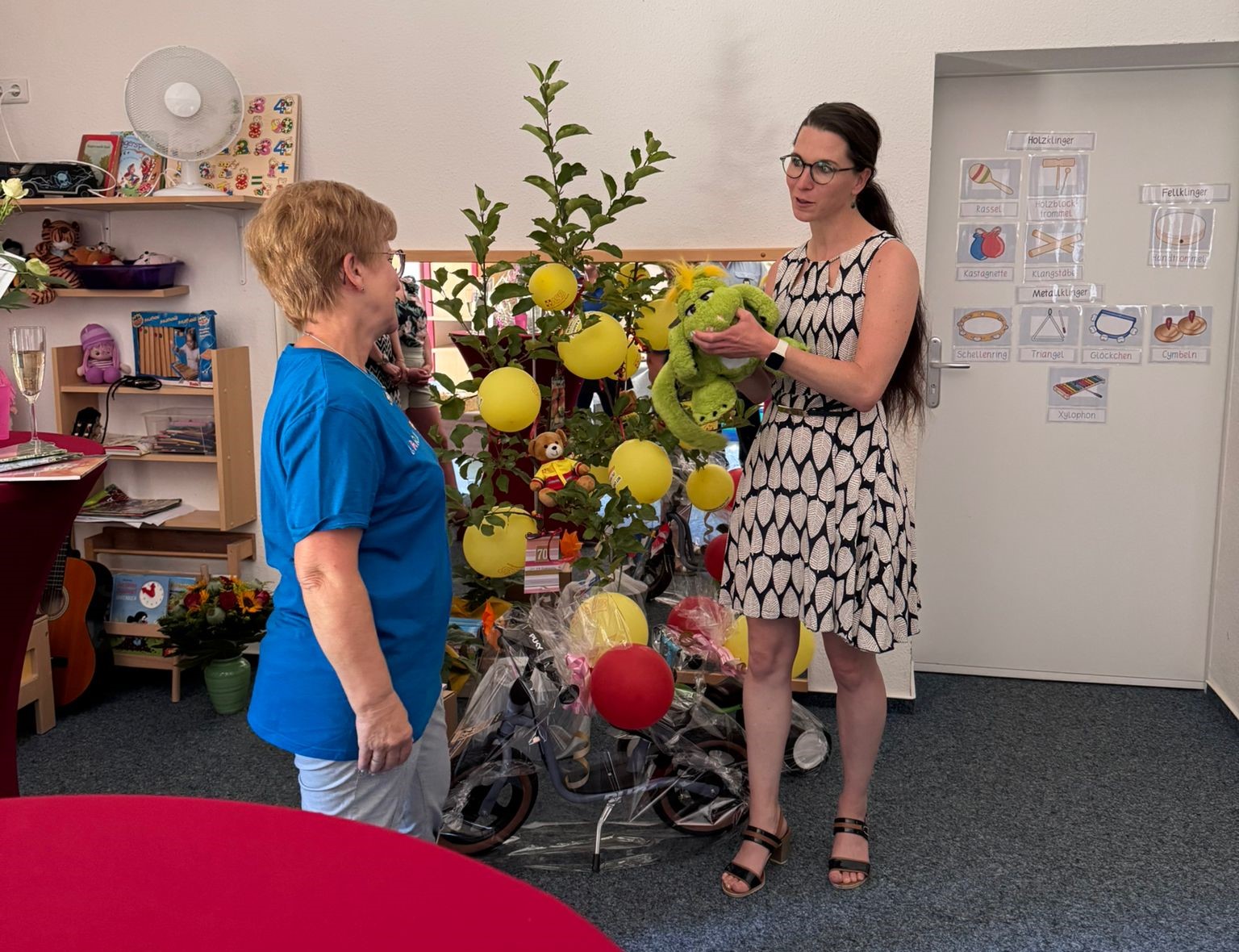 Alexandra Adel gratulierte im Rahmen des kleinen Festaktes, das Kita-Kinder mit einem Programm bereicherten,