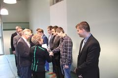 Nach der Begrüßung durch die beiden Geschäftsführer der SPEMA GmbH Georg Wolter und Hanjo Sawitzki richtete Oberbürgermeisterin Dr. Dietlind Tiemann einige Grußworte an die aufgeregten jungen Facharbeiter. Sie dankte insbesondere der Geschäftsführung und den Beschäftigten für ihr Engagement im Bereich der Ausbildung.