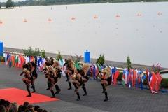 Als letzter Redner eröffnete ICF-Präsident Jose Perurena Lopez die Weltmeisterschaften im Kanurennsport. Mit dem hissen der ICF Flagge sowie der Deutschlandflagge endete der offizielle Teil und das Showprogramm begann.