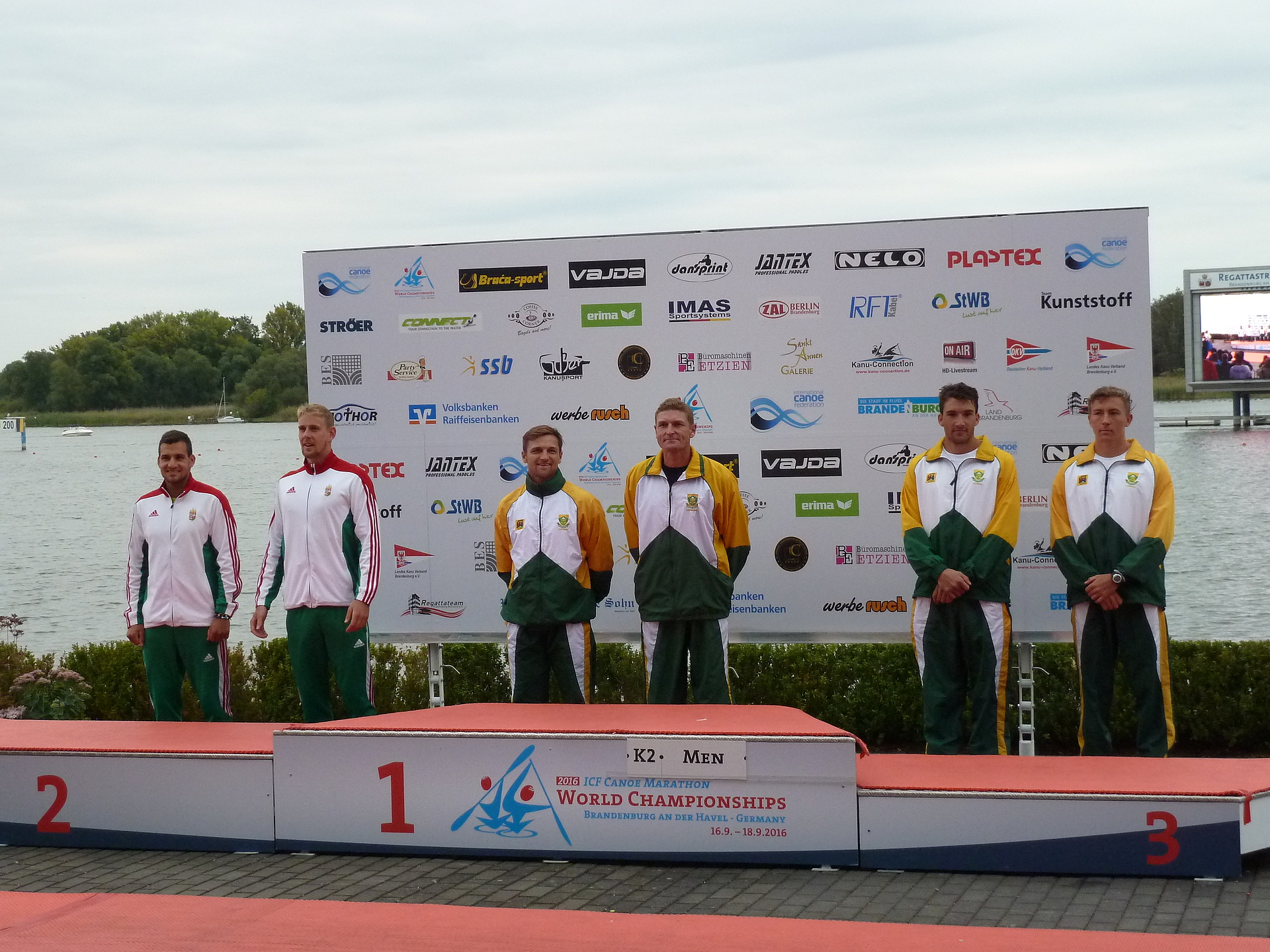 Nach drei ereignisreichen Tagen gingen am späten Sonntagnachmittag (18.09.2016) auf der Regattastrecke „Beetzsee“ in Brandenburg an der Havel die diesjährigen Kanu-Marathon-Weltmeisterschaften zu Ende. Bei der offiziellen Abschlusszeremonie lobten der DKV-Präsident Thomas Konietzko und Jorn Cronberg, Mitglied des ICF Vorstandes und Vorsitzender des ICF Kanu-Marathon-Komitees, die hervorragende Arbeit der WM-Organisatoren vom Regattateam Brandenburg Beetzsee e.V.. Nach dem Einholen der ICF-Flagge übergab Cheforganisator Michael Kenzler diese an den Vertreter der südafrikanischen Stadt Pietermaritzburg, wo die WM im nächsten Jahr stattfindet.