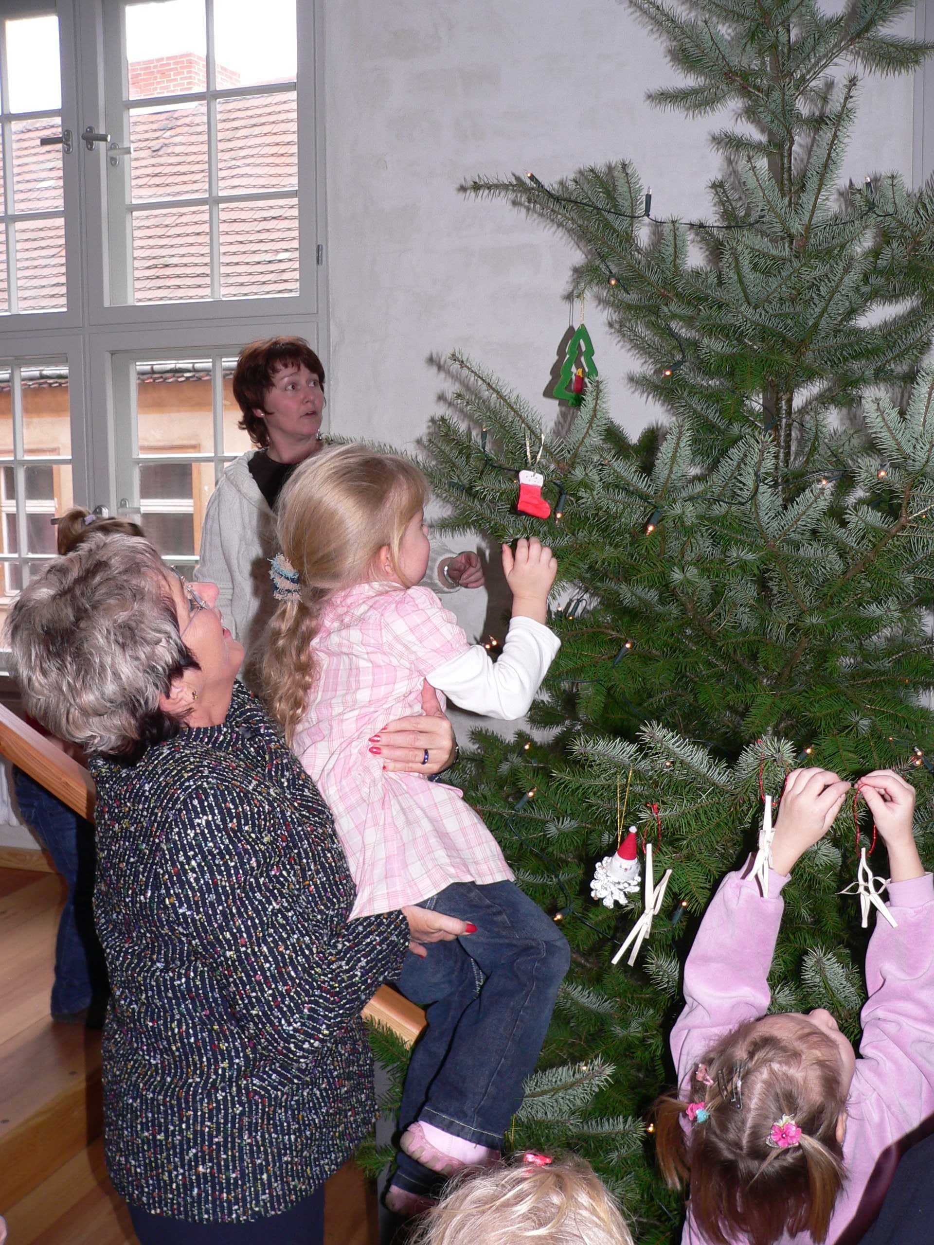 Die Kinder vom „ABC-Club“ der Kita „Kleine Strolche vom Humboldthain“ haben am Freitag, 28.11.2008, im Empfangsbereich des Büros der Oberbürgermeisterin im Altstädtischen Rathaus einen Weihnachtsbaum geschmückt. Gemeinsam mit ihren Erzieherinnen Heike Schrader und Marita Pringle dekorierten sie die Tanne mit selbst gebastelten Figuren und Sternen aus Holz, Plaste, Papier und Zapfen. Dabei wurden sie von Oberbürgermeisterin Dr. Dietlind Tiemann, Bürgermeister Steffen Scheller, Beigeordneten Michael Brandt sowie den Mitarbeiterinnen und Mitarbeitern des Büros tatkräftig unterstützt.