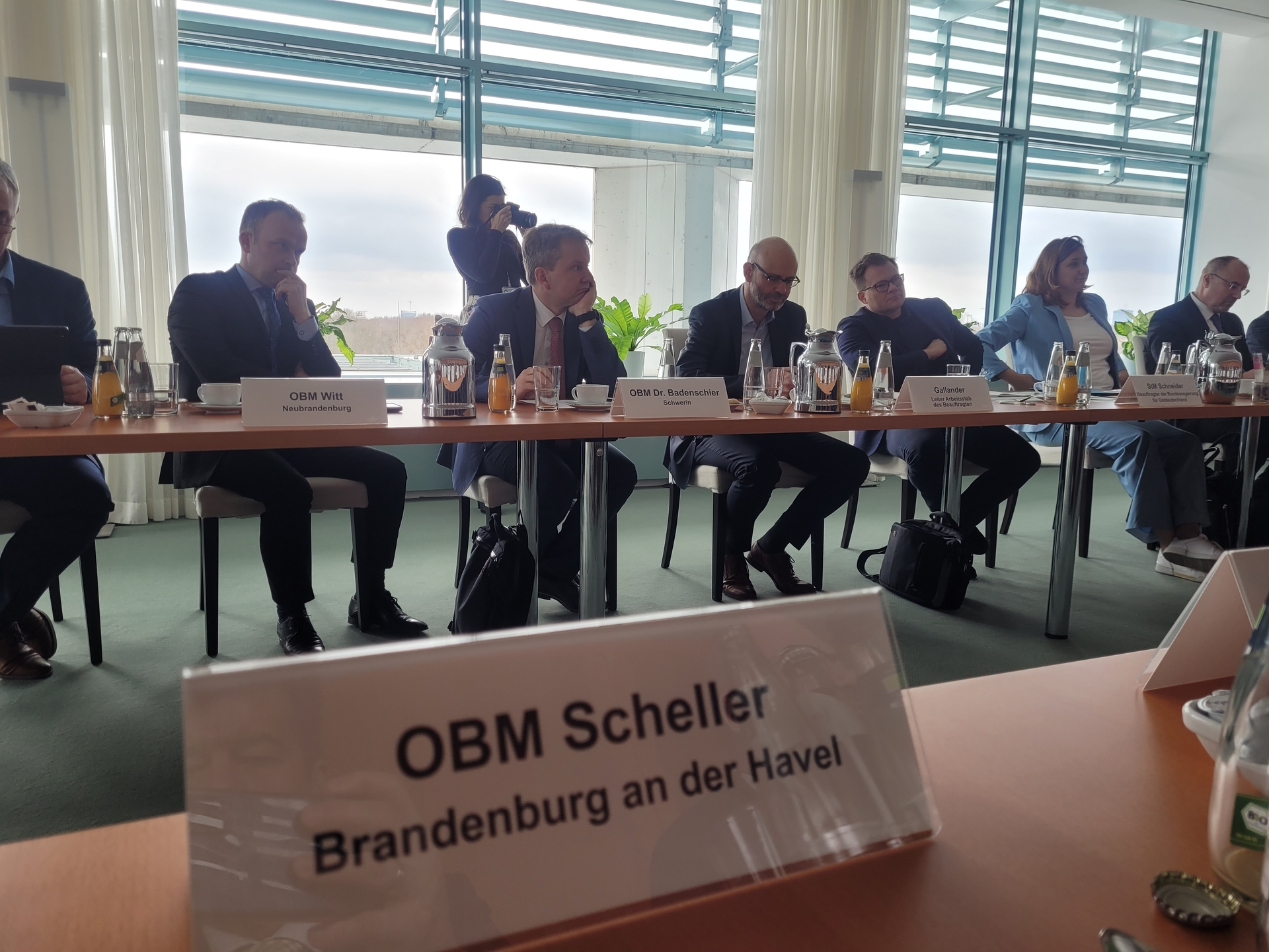Am Montag, 20. März 2023, nahm Oberbürgermeister Steffen Scheller im Bundeskanzleramt gemeinsam mit den Oberbürgermeistern und Oberbürgermeisterinnen sowie Bürgermeistern und Bürgermeisterinnen der ostdeutschen Mitgliedsstädte des Deutschen Städtetages erneut an einem Austausch mit dem Staatsminister und Beauftragten der Bunderegierung für Ostdeutschland, Carsten Schneider, teil.