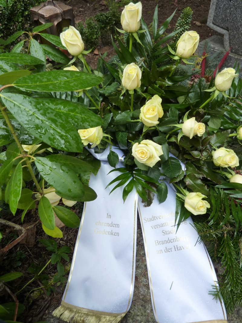 Anlässlich des 5. Todestages des Brandenburger Ehrenbürgers Friedrich-Karl Grasow legten am Freitag, 28.02.2014, Bürgermeister Steffen Scheller, Vertreter der Stadtverordnetenversammlung und Familienangehörige am Grab des Brandenburger Ehrenbürgers auf dem Hauptfriedhof Görden Kränze nieder.