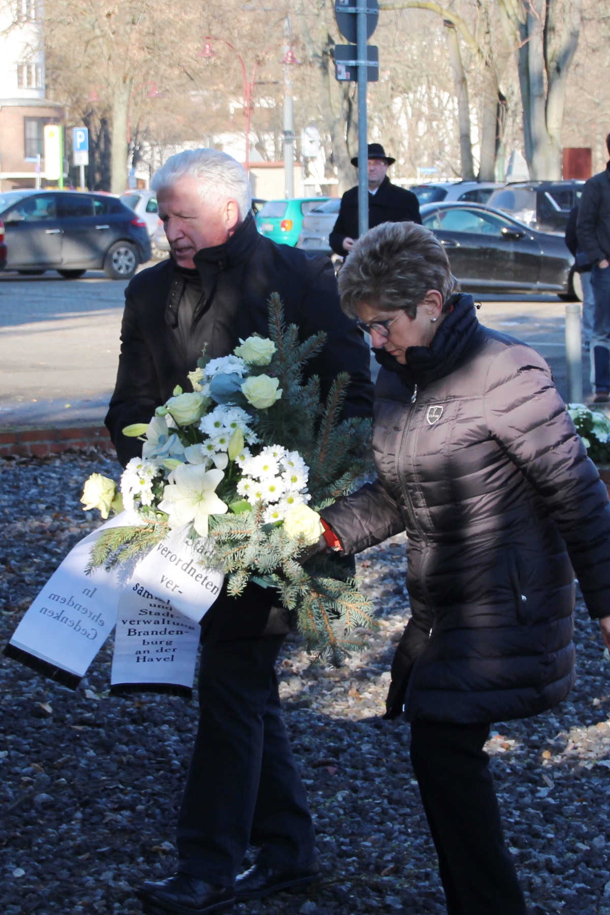 In Gedenken an die Opfer des Nationalsozialismus hat Oberbürgermeisterin Dr. Dietlind Tiemann am 27. Januar 2017 um 13:00 Uhr zur Kranzniederlegung an der Gedenkstätte für Opfer der Euthanasie-Morde eingeladen. In Ihrer Rede bedankte sich die Oberbürgermeisterin bei allen Anwesenden, dass sie „auch in diesem Jahr unserer Einladung gefolgt sind, um hier an diesem geschichtsträchtigen Ort im Zentrum unserer Stadt Brandenburg an der Havel der unzählichen Kinder, Frauen und Männer aus Deutschland und Europa zu gedenken, die dem Verfolgungs- und Vernichtungswahn der Nationalsozialisten zum Opfer gefallen sind.“