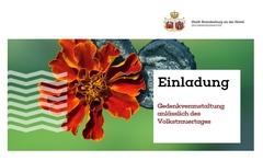 Anlässlich des diesjährigen Volkstrauertages am Sonntag, dem 13. November 2022, laden Oberbürgermeister Steffen Scheller und Walter Paaschen, Vorsitzender der Stadtverordnetenversammlung, die Bürgerinnen und Bürger sowie Vertreter aus Politik, Verwaltung und Wirtschaft um 10:00 Uhr zu Kranzniederlegungen auf der Kriegsgräberstätte auf dem Marieberg ein.