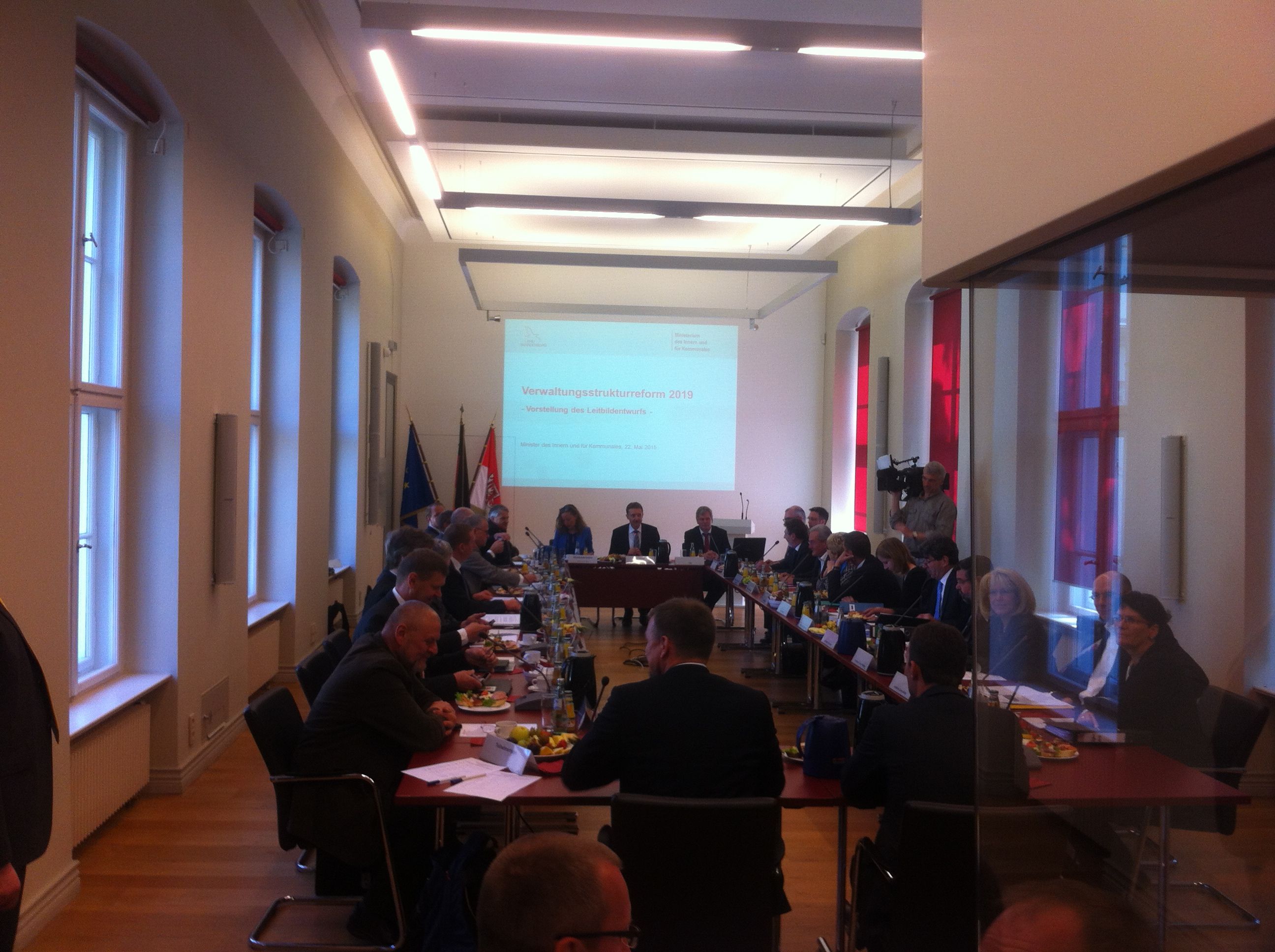 Die vor wenigen Minuten erfolgte Vorstellung des Leitbildes zur Kreis- und Gemeindereform durch Innenminister Schröter bewertet Brandenburgs Oberbürgermeisterin Dr. Dietlind Tiemann als „enttäuschend“.
