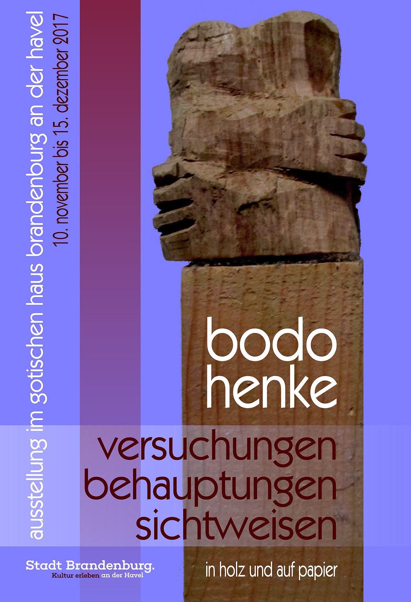 Vom 10.November bis 15.Dezember 2017 kann Bodo Henkes Ausstellung „versuchungen – behauptungen -sichtweisen in holz und auf papier“ kostenfrei im Gotischen Haus, Johanniskirchplatz 4 in Brandenburg an der Havel besucht werden.