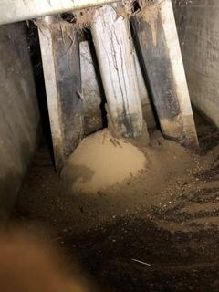 Auf Grund des Starkregens vor einigen Tagen kam es zu einer vollständigen Verschlämmung der Mechanikgruben des Schaukelschiffes auf dem Kinderspielplatz am Heinrich-Heine-Ufer.