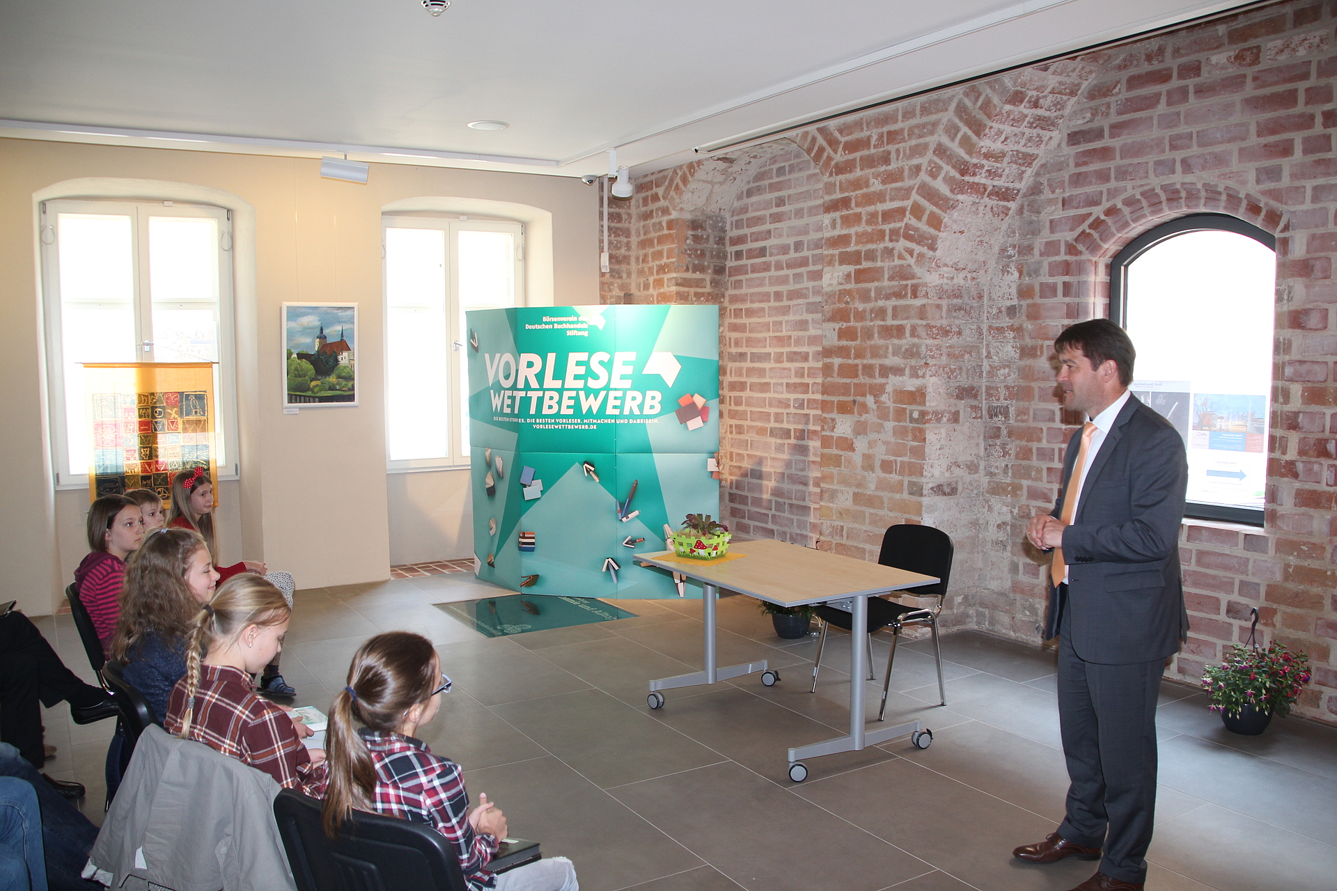 Im Gotischen Haus begrüßte heute Oberbürgermeister Steffen Scheller die sechs jungen Siegerinnen und Sieger aus den Regionalrunden des landesweiten Lesewettstreits, den die Fouqué‐Bibliothek und der Landesverband Berlin‐ Brandenburg des Börsenvereins des Deutschen Buchhandels e.V. gemeinsam veranstaltet haben und wünschte ihnen viel Glück.