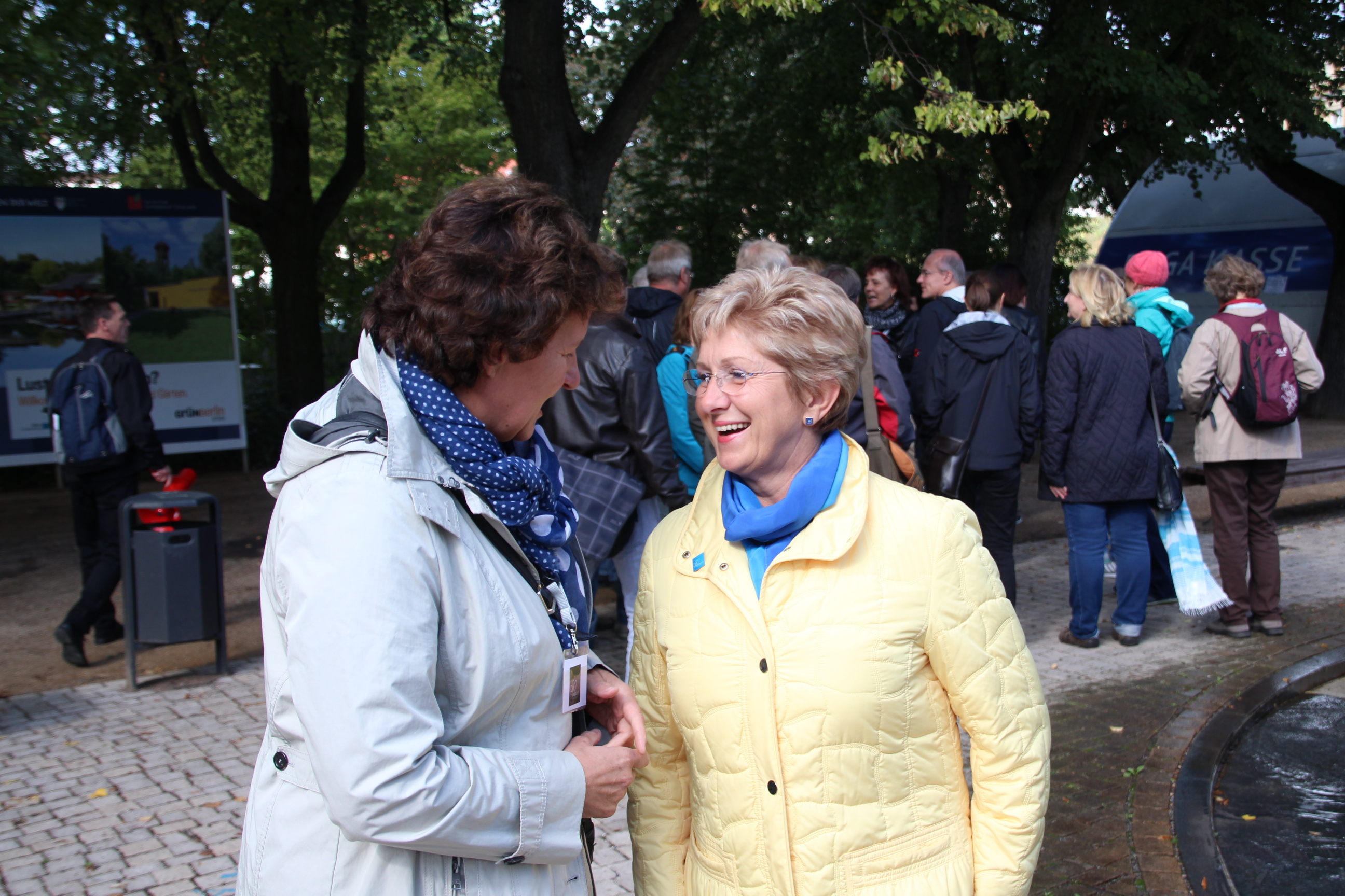 Am Südaufgang des Marienberges begrüßte heute Oberbürgermeisterin Dr. Dietlind Tiemann die Landtagspräsidentin Britta Stark, die gemeinsam mit der Landtagsverwaltung die BUGA-Ausstellungsflächen in Brandenburg an der Havel besichtigen.