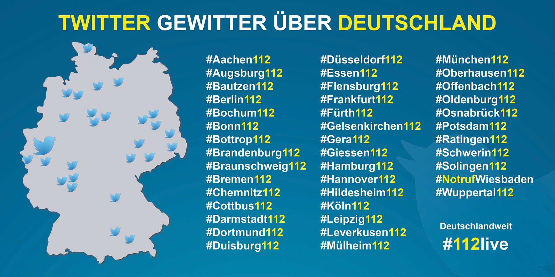 Unter dem Hashtag #112live und #Brandenburg112 ist die Feuerwehr Brandenburg an der Havel am 11. Februar von 08:00 bis 20:00 Uhr auf Twitter präsent. Sie geben Einblicke in den „ganz normalen Alltag“ mit wie Dienstübernahme, Gerätepflege, Ausbildung, Sport und Einsatz. Sie informieren über Einstiegsmöglichkeiten und ganz persönliche Wege zur Feuerwehr. Sie berichten über das richtige Absetzen eines Notrufs und geben Tipps zum Verhalten im Notfall. Die Beiträge der Feuerwehr sind auch auf der Facebook Seite der Feuerwehr Brandenburg sichtbar.