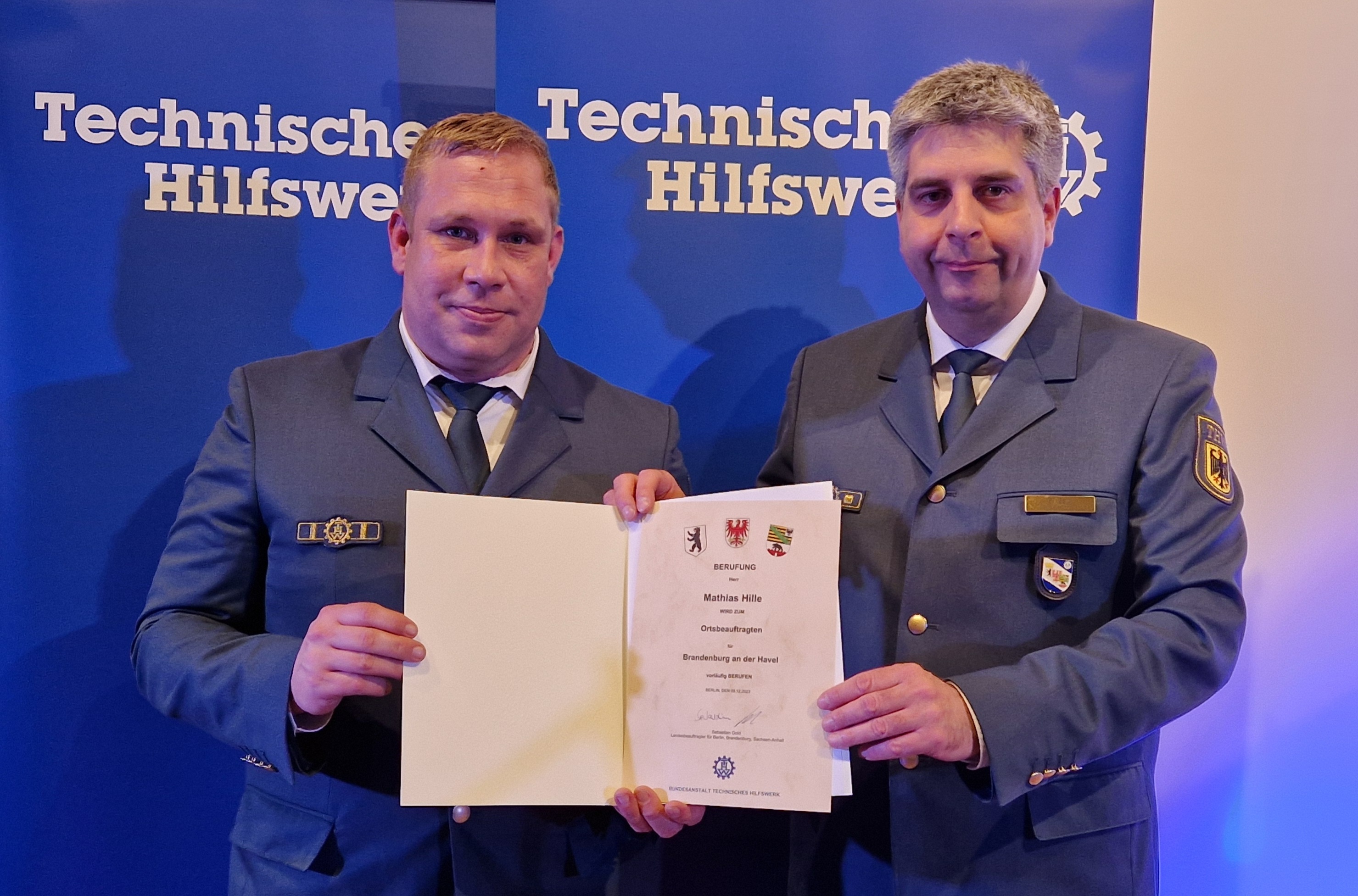 Im Beisein von Sebastian Gold, Landesbeauftragter für Berlin – Brandenburg – Sachsen-Anhalt der Bundesanstalt Technisches Hilfswerk (THW), Oberbürgermeister Steffen Scheller, Beigeordneter Thomas Bartz sowie Uwe Hohn, kommissarischer Amtsleiter für Feuerwehr und Rettungswesen, fand im Rolandsaal des Altstädtischen Rathauses die feierliche Amtseinführung des Ortsbeauftragten für den THW-Ortsverband Brandenburg an der Havel, Matthias Hille, statt.