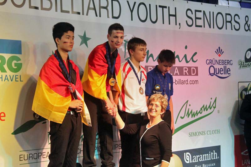 Oberbürgermeisterin Dr. Dietlind Tiemann durfte am Mittwoch, 01.08.2012, dem neuen Europameister in der Disziplin 8-Ball, Joshua Filler (Deutschland), die Goldmedaille überreichen.