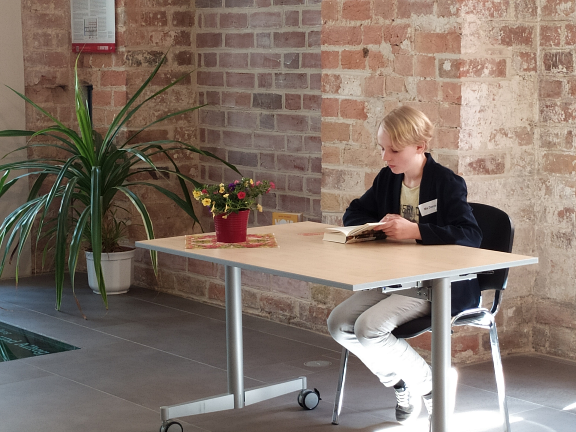 In der ersten Runde stellten sie ihren eigenen Lieblingstext vor und in der zweiten Runde wurde aus dem Buch „Tim und das Geheimnis von Knolle Murphy“ von Eoin Colfer ein bis dahin den Teilnehmern unbekannter Text vorgelesen.