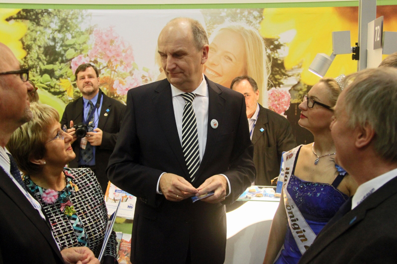 Am Freitag, 07.03.2014, begrüßte Oberbürgermeisterin und BUGA-Zweckverbandsvorsitzende Dr. Dietlind Tiemann am Gemeinschaftsstand der Stadt Brandenburg an der Havel und der BUGA 2015 Havelregion den Ministerpräsident Dr. Dietmar Woidke und den Wirtschaftsminister Ralf Christoffers.