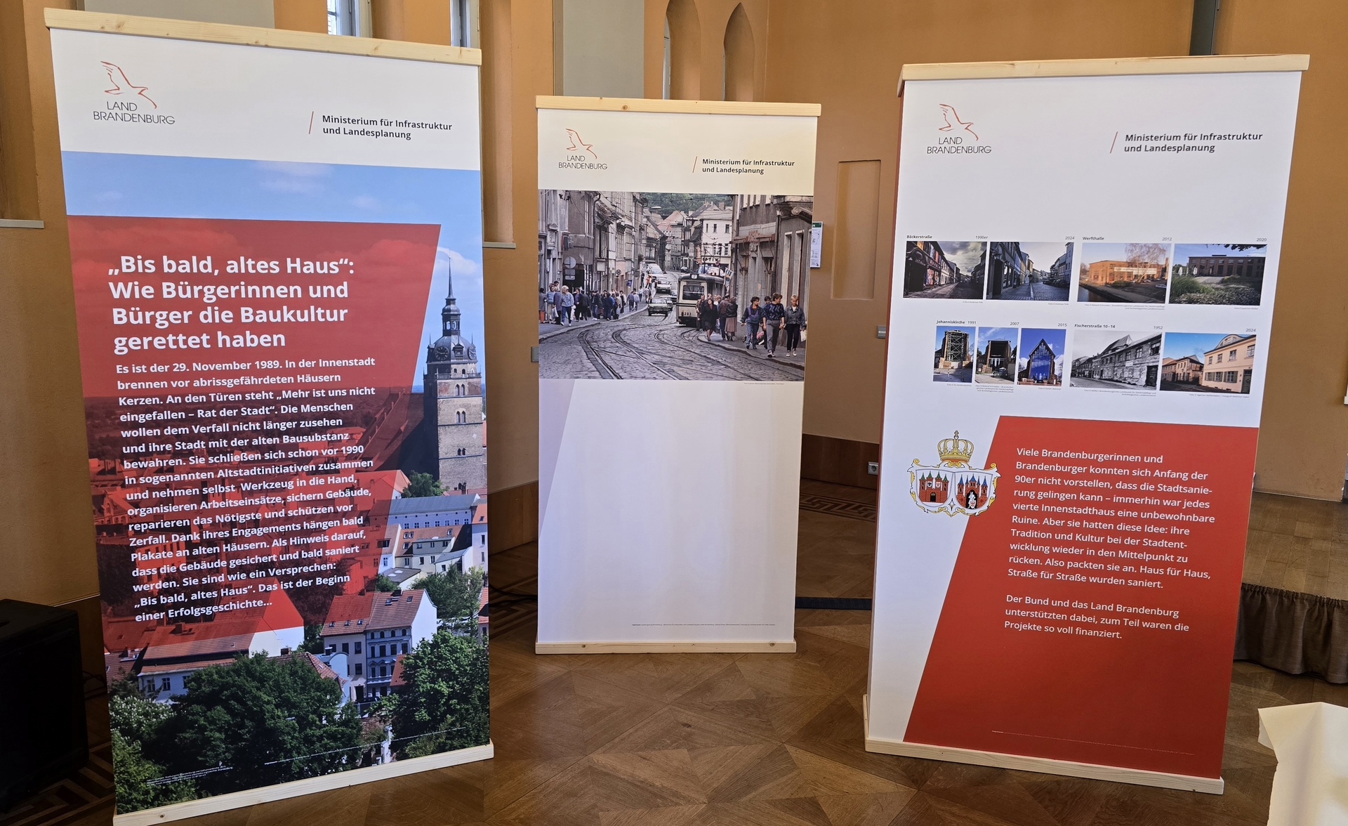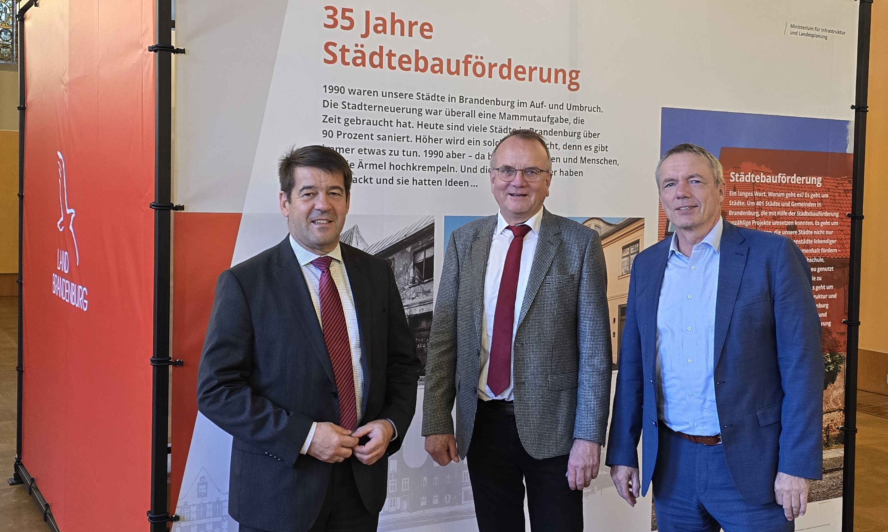 Die Ausstellung mit historischen und aktuellen Fotografien zeigt die Entwicklung der brandenburgischen Städte in den zurückliegenden rund 35 Jahren. Es ist geplant, dass sie im kommenden Jahr anlässlich 35 Jahre Städtebauförderung als Wanderausstellung in verschiedenen Orten im Land zu sehen sein wird. Seit 1991 flossen rund 4,1 Milliarden Euro Bundes- und Landesmittel aus verschiedenen Bund-/Länderprogrammen in 401 brandenburgische Kommunen.