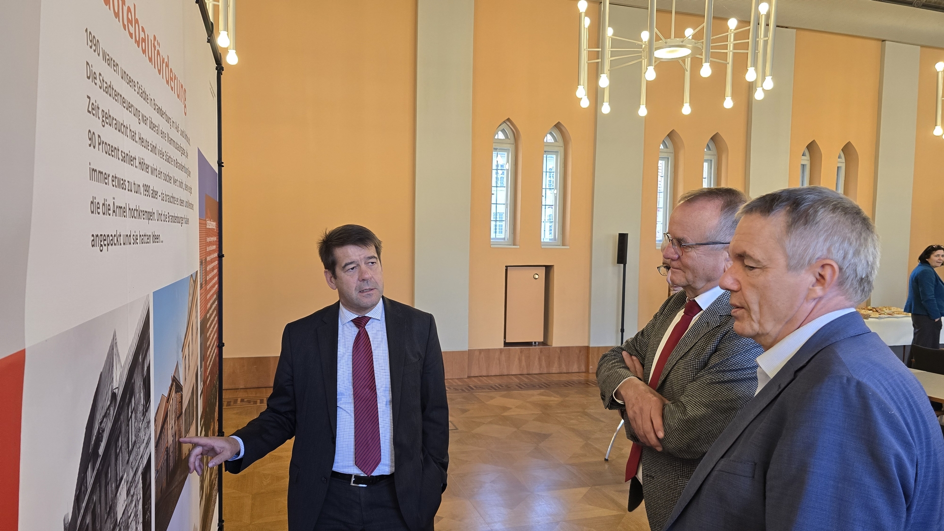 „35 Jahre Städtebauförderung das ist mehr als ein Jubiläum. Es ist der Beweis, wie aus Visionen und Ideen sichtbare Wirklichkeit werden kann. Wir befinden uns hier im Rolandsaal, der exemplarisch für die Restaurierung historischer Bauten in Brandenburg an der Havel steht. Hier sind aus verschiedenen Fördertöpfen Mittel reingeflossen, um ihm sein historisches Ambiente zurückzugeben. Als Brandenburg an der Havel 1990 in das Programm der Städtebauförderung aufgenommen wurde, lag vieles im Argen. Ganze Straßenzüge im 94 Hektar großen Sanierungsgebiet waren vom Verfall bedroht. Viele Gebäude standen leer, Dächer und Fassaden zerfielen. Heute zeigt sich ein anderes Bild. Insgesamt wurden in Brandenburg an der Havel über 400 Gebäude vollständig instandgesetzt oder modernisiert, einschließlich Stadtmauern, Stadttürmen und Kirchen. Weitere mehr als 170 Gebäude wurden durch kleinere Maßnahmen erhalten und aufgewertet. Tausende Wohnungen konnten saniert, modernisiert oder neu geschaffen werden. Seit 1991 konnten ca. 90 Prozent des Gebäudebestandes sowie des öffentlichen Raumes saniert werden. Die Förderung beschränkt sich dabei nicht nur auf einzelne Objekte. Sie hat ganze Stadtquartiere verändert – insbesondere in Altstadt, Neustadt und auf der Dominsel. Hier wurden Straßen erneuert, Plätze neugestaltet, Freiflächen angelegt und historische Gebäude wiederbelebt. Das alles war nur möglich, weil Bund, Land und Kommunen über Jahrzehnte verlässlich zusammengewirkt haben. Jeder eingesetzte Euro hat Wirkung entfaltet – sichtbar im Stadtbild, spürbar in der Lebensqualität,“