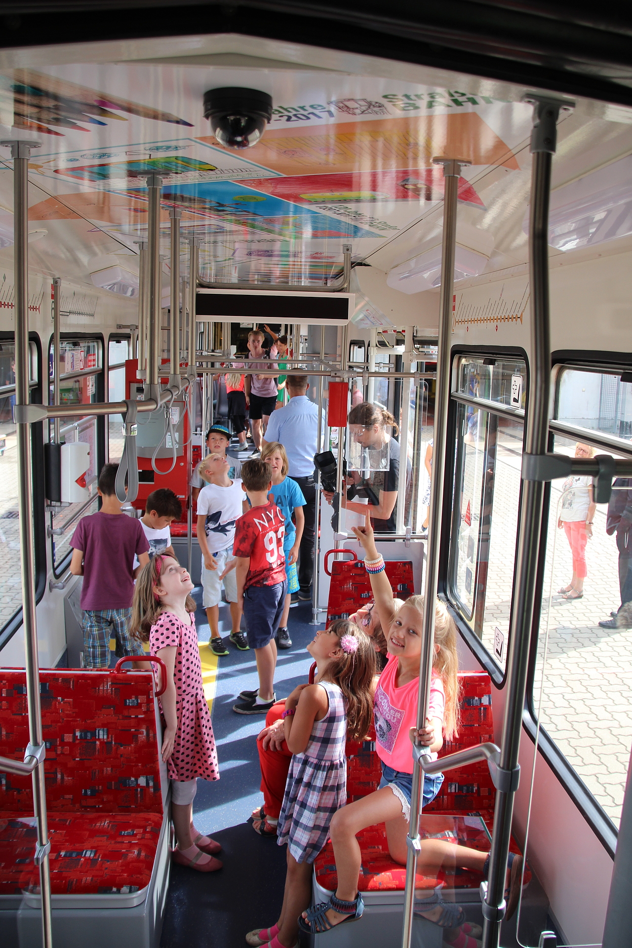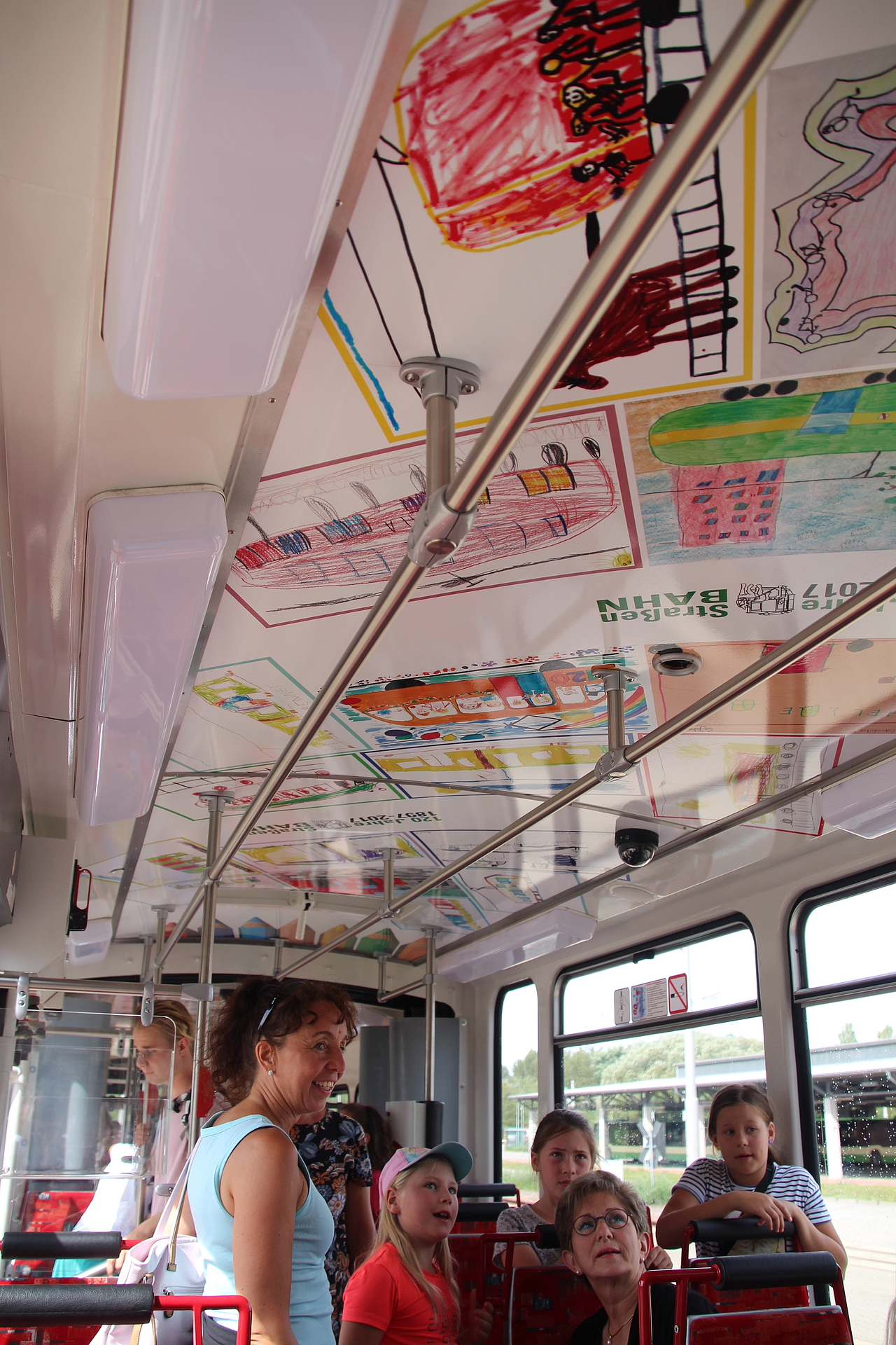 Oberbürgermeisterin Dr. Dietlind Tiemann: „Unsere Verkehrsbetriebe sind darauf angewiesen, alte Bahnen mit einer Laufleistung von über 1,5 Mio. Kilometer zu modernisieren, da das Land seiner finanziellen Verantwortung nur unzureichend nachkommt. Umso schöner sind die in Eigenregie generalüberholten Straßenbahnen. Die Fahrzeugdecke des TW 178 wurde im Rahmen eines Malwettbewerbes von Kita- und Hortkindern gestaltet. Das ist eine sehr schöne Idee unserer Verkehrsbetriebe.“
