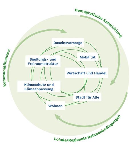 Die Arbeitshilfe möchte die Kommunen dabei unterstützen, das Spannungsfeld der räumlichen Planungsebenen von Stadtteilen und Gesamtstadt, Ortsteilen, Nachbargemeinden sowie regionaler Einbettung konzeptionell bestmöglich zu gestalten. Damit dies gelingt, nimmt die INSEK-Arbeitshilfe neben der inhaltlichen Ausgestaltung von Integrierten Stadtentwicklungskonzepten auch deren Vorbereitung und Umsetzung stärker in den Blick.