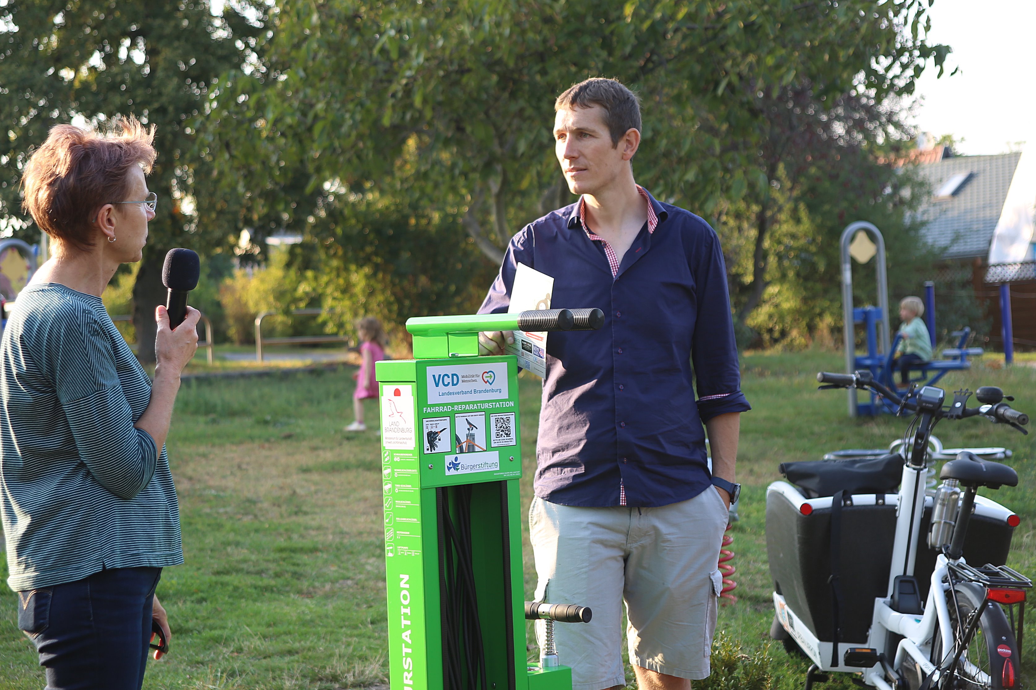 Im Rahmen der Europäischen Mobilitätswoche hat der Verkehrsclub Deutschland (VCD) Brandenburg e.V. in Kooperation mit lokalen Akteuren der Denkmanufaktur die erste Fahrrad-Reparaturstation in Kirchmöser eröffnet. Finanziert wird die ca. 2.500 Euro teure Station, die sich auf dem Spielplatz neben dem Restaurant „Havelhecht“ in der Gränertstraße befindet und rund um die Uhr genutzt werden darf, von der „Bürgerstiftung Brandenburg an der Havel“. Den Sockel hat Ortsvorsteher Carsten Eichmüller selbst hergestellt. Der Gastwirt nebenan meldet dem VCD, wenn die Station mal selbst reparaturbedürftig sein sollte.