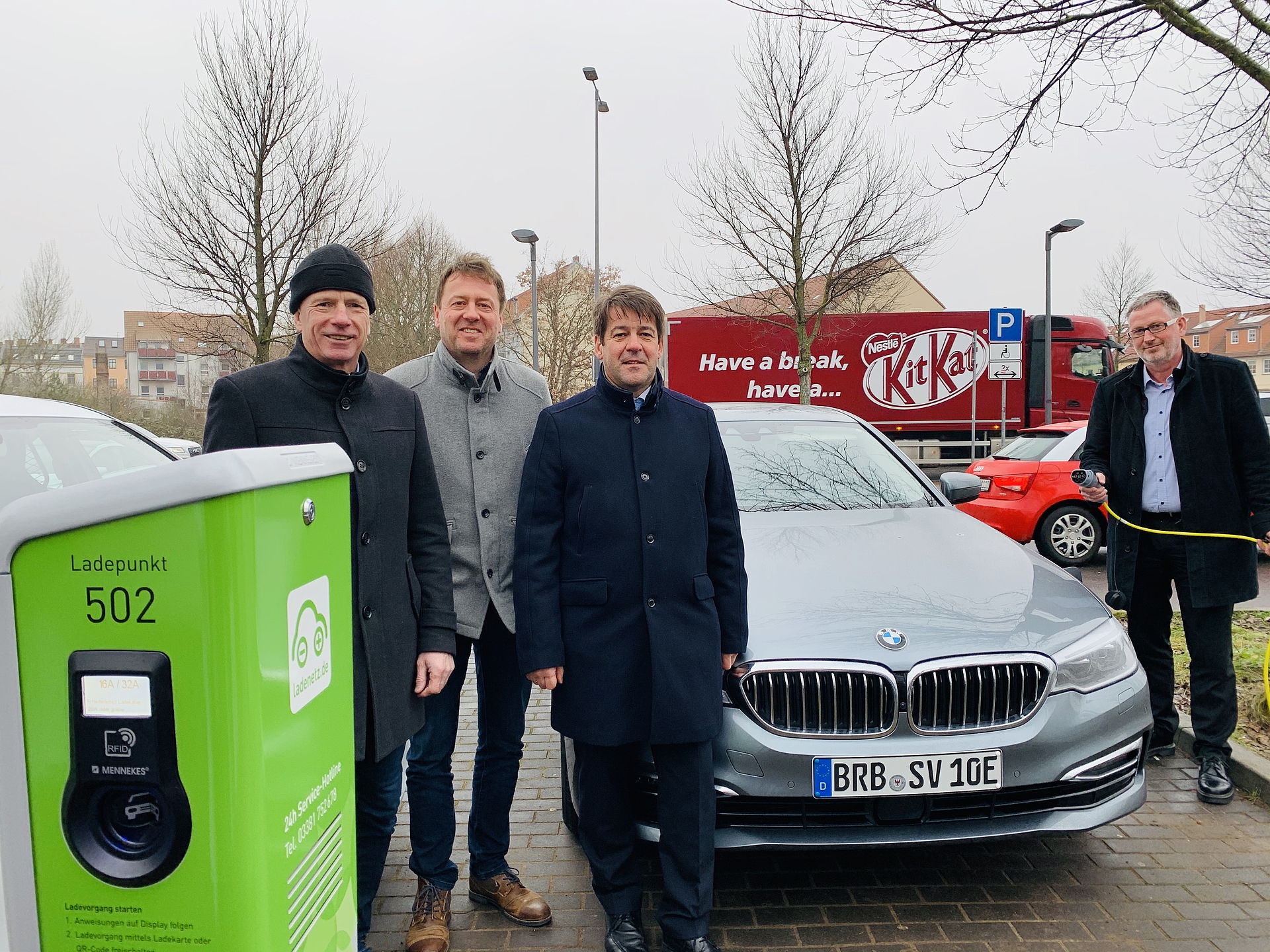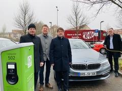 Zusammen mit den Geschäfstführern der Stadtwerke Brandenburg an der Havel hat Oberbürgermeister Steffen Scheller heute die beiden Ladesäulen am Hauptbahnhof eingeweiht.