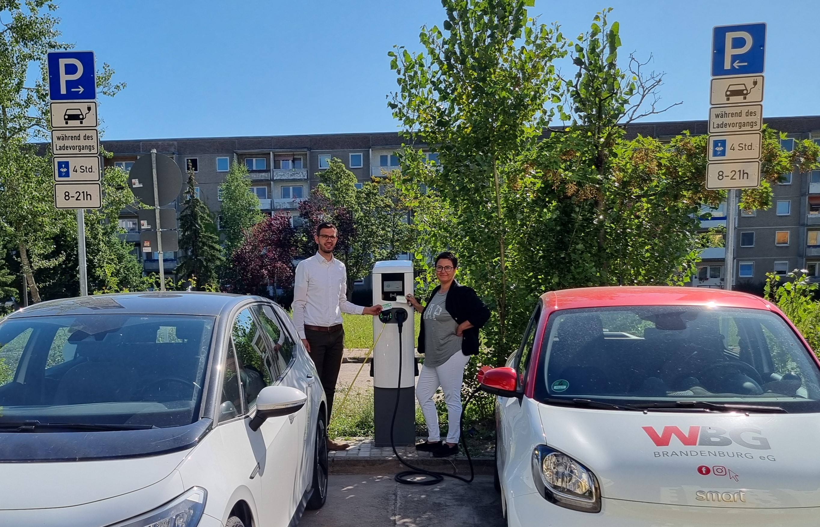 Vier neue Ladesäulen haben die Stadtwerke Brandenburg gemeinsam mit der Wohnungsbaugenossenschaft Brandenburg (WBG) in den Stadtteilen Nord und Hohenstücken in Betrieb genommen. Die Säulen haben eine Kapazität von 2 x 22 kW, sind auf öffentlichen Parkplätzen in der Werner-Seelenbinder-Straße, Max-Herm-Straße, Rosa-Luxemburg-Allee und in der Kopenhagener Straße errichtet und können somit unter anderem von vielen Mieterinnen und Mietern der WBG genutzt werden.
