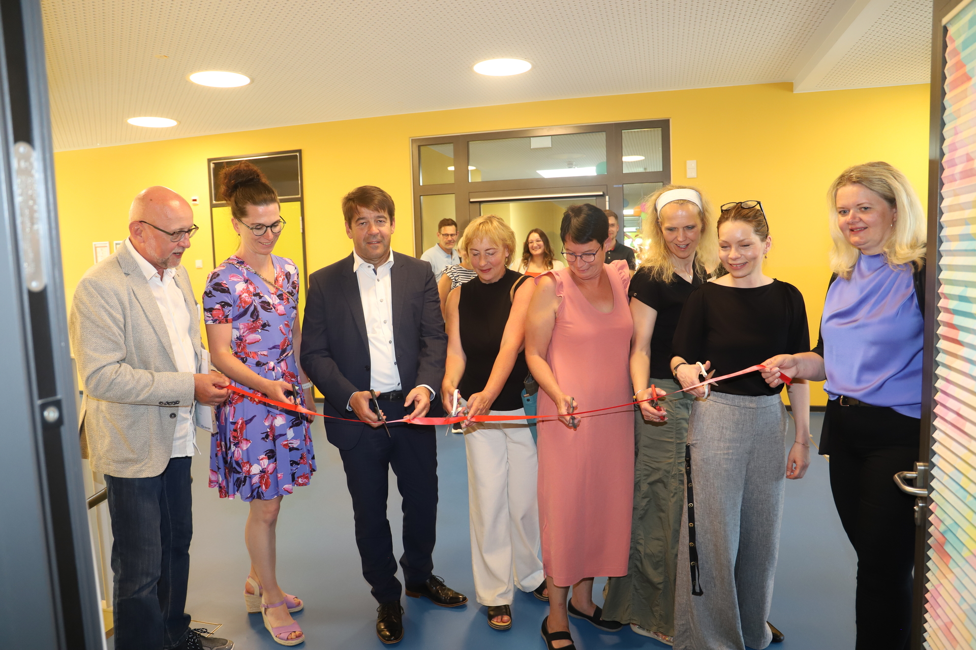 Mit dem Durchschneiden eines Bandes ist in der Kita „Lebenswelten“ am Gallberg 7 die neue Übernachtungseinheit „Traumwelten“ offiziell eingeweiht worden. Oberbürgermeister Steffen Scheller und die Sozialbeigeordnete Alexandra Adel machten sich vor Ort ein Bild von den neuen Räumlichkeiten, die ab dem 1. Juli 2025 den Betrieb aufnehmen sollen. Betreiber ist der Lebenshilfe Brandenburg – Potsdam e.V.