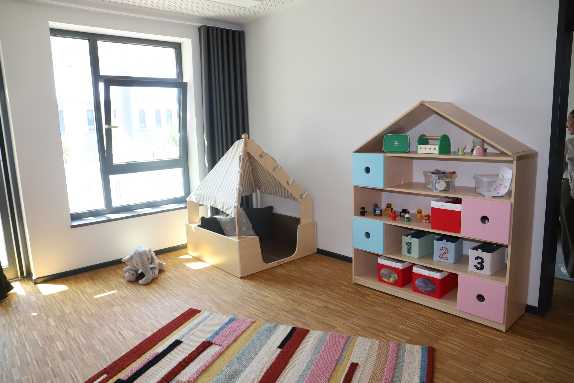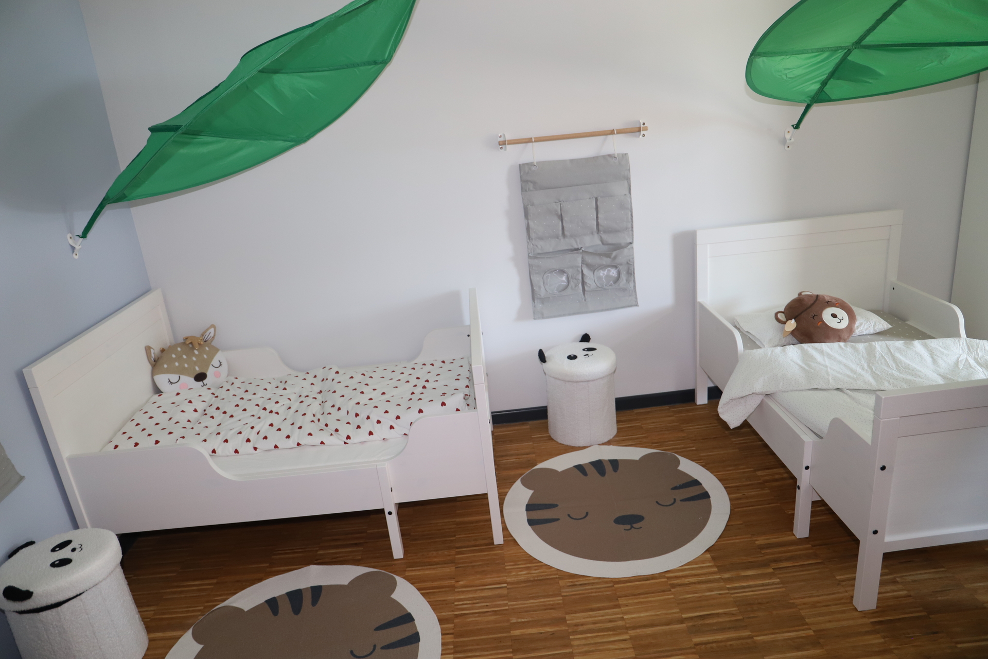 Insgesamt fünf liebevoll eingerichtete Räume stehen künftig für die Übernachtungsbetreuung von bis zu zwölf Kindern im Alter von ein bis zwölf Jahren zur Verfügung. Die neue Einheit umfasst eine rund 200 Quadratmeter große Wohneinheit innerhalb des bestehenden Kita-Gebäudes. Hier werden bereits 80 Kinderkrippen-, 70 Kindergarten- und 54 Hortplätze angeboten.