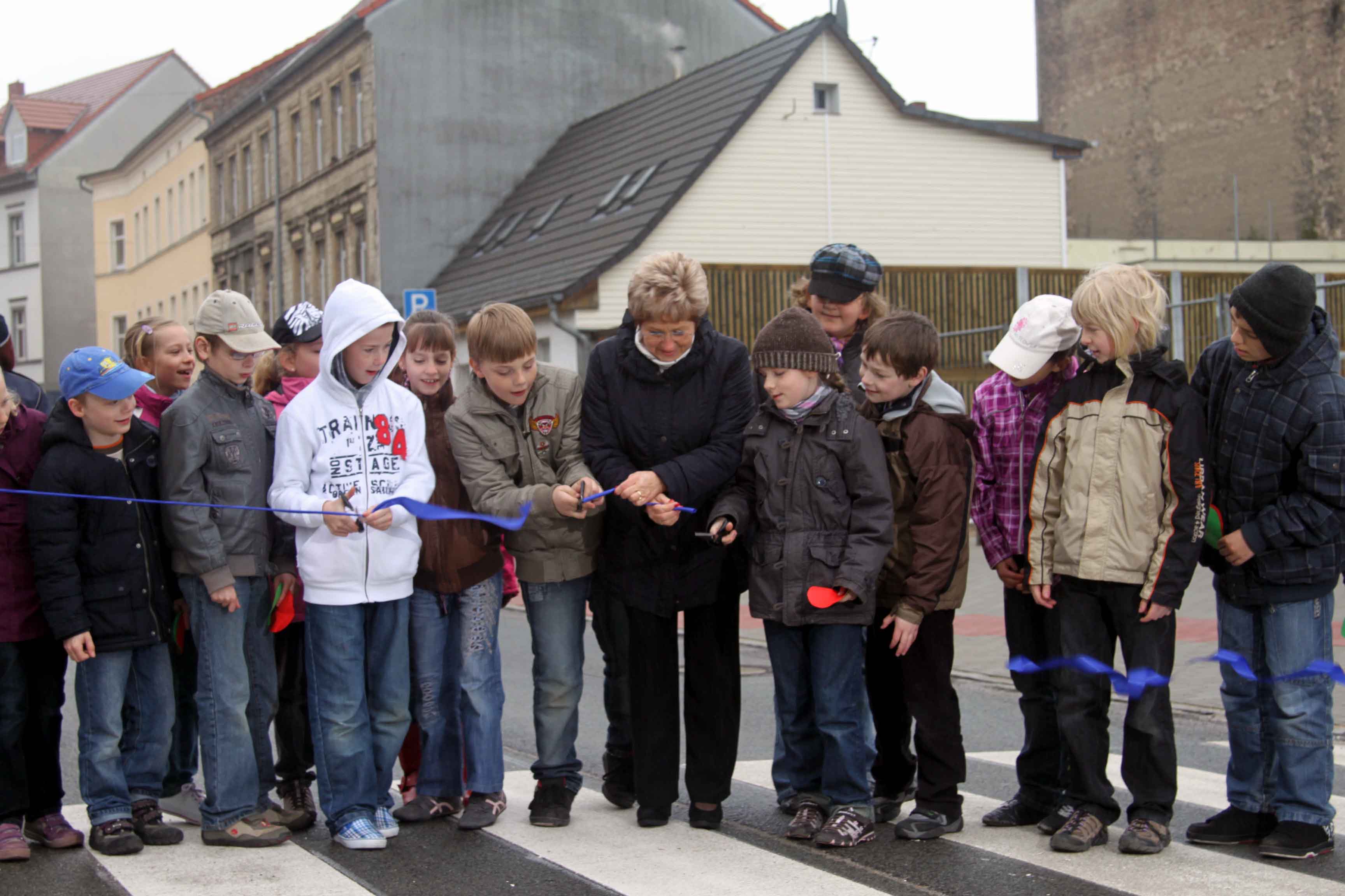 Am Donnerstag, 14. April 2011, hat Oberbürgermeisterin Dr. Dietlind Tiemann gemeinsam mit den Planern und den Schülerinnen und Schülern sowie Lehrer der Luckenberger Schule die neue Verkehrsanlage zur Schulwegsicherung an der Luckenberger Schule eingeweiht.