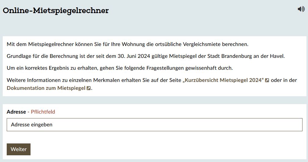 Ab sofort bietet die Stadt Brandenburg an der Havel auf ihrer Homepage einen neuen digitalen Service für Mieter und Vermieter: den Online-Mietspiegelrechner. Mit ihm können Nutzerinnen und Nutzer bequem die ortsübliche Vergleichsmiete für ihre Wohnung berechnen. Um die ortsübliche Vergleichsmiete zu berechnen, müssen Nutzer u.a. Angaben zur Lage der Wohnung, Größe, Ausstattung und zum Zustand des Gebäudes machen.