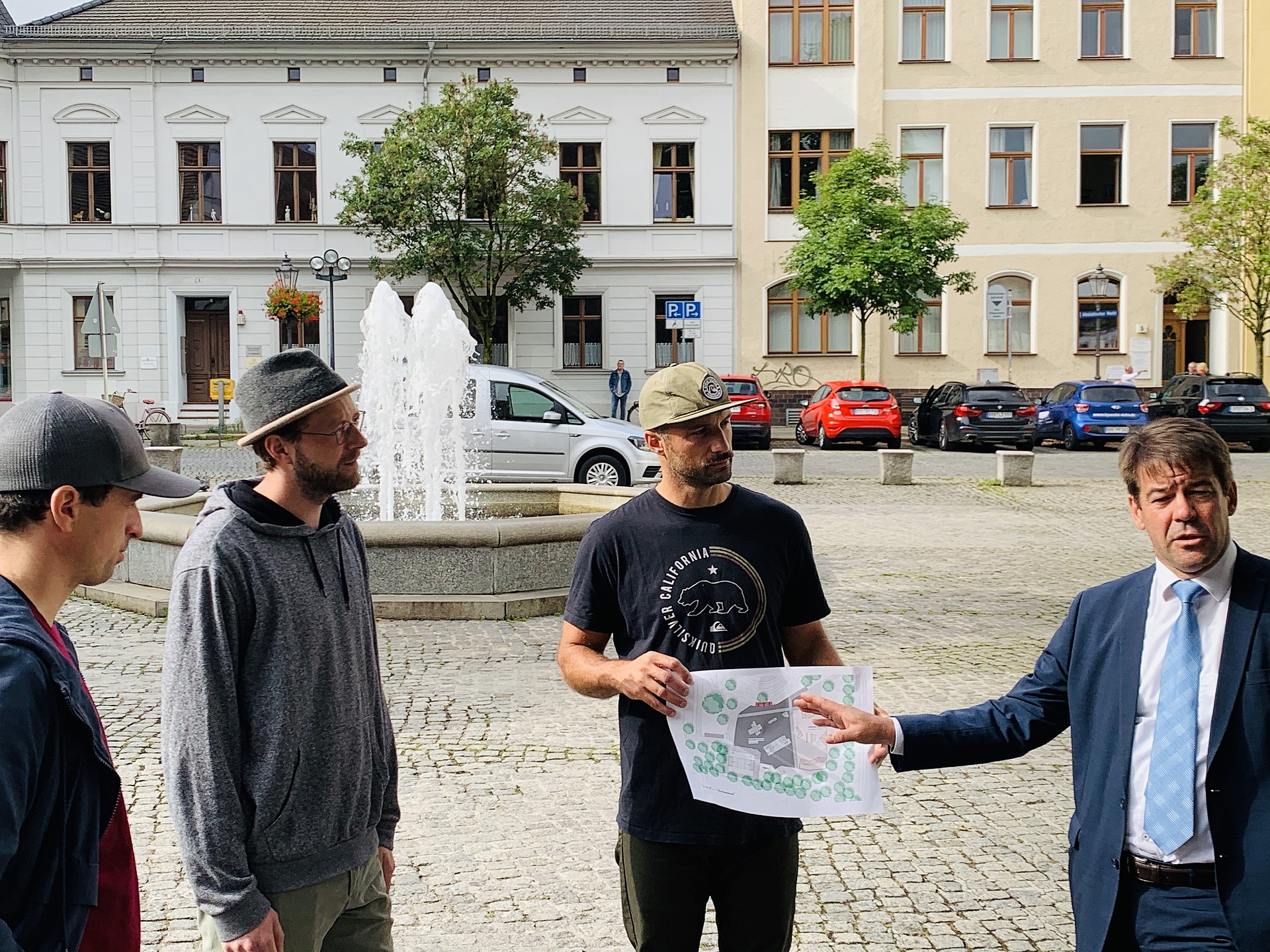 Zusammen mit Vertretern des Rollklub e.V. (Christian Heise, Robert Weißbach und Patrick Ehrenbrecht) hat Oberbürgermeister Steffen Scheller heute die Pläne für den neuen Skatepark in Hohenstücken vorgestellt.