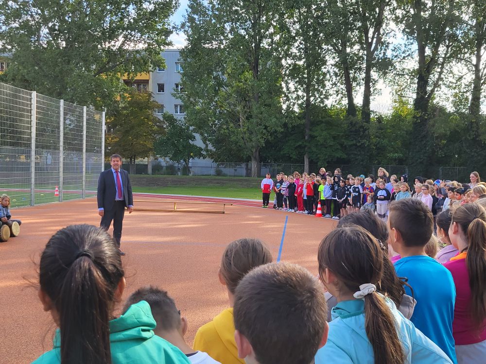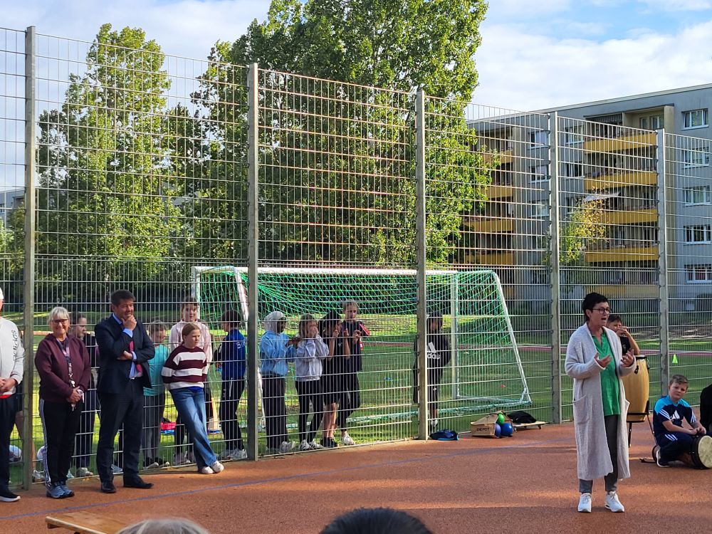 „Mit dem neuen Sportplatz schaffen wir optimale Voraussetzungen, damit unsere Kinder sich bewegen, austoben und sportlich entwickeln können. Er ist ein Gewinn für die Schule, aber auch für die ganze Stadt.“