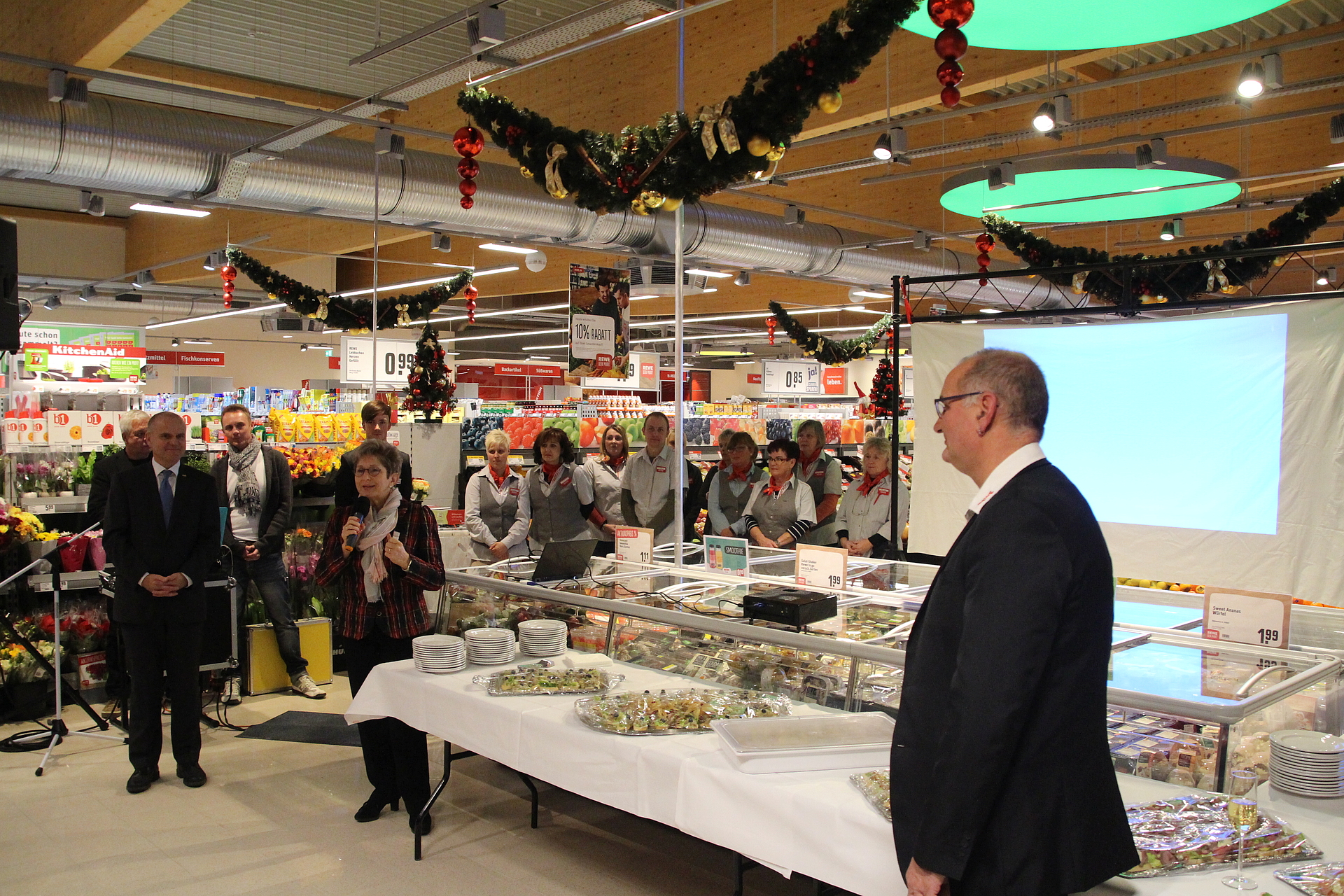 Oberbürgermeisterin Dr. Dietlind Tiemann gratulierte dem REWE-Team und wünschte viel Erfolg: „Das was hier für Plaue und Kirchmöser geschaffen wurde, ist bemerkenswert“, lobte die Oberbürgermeisterin Peter Koppenhagen.