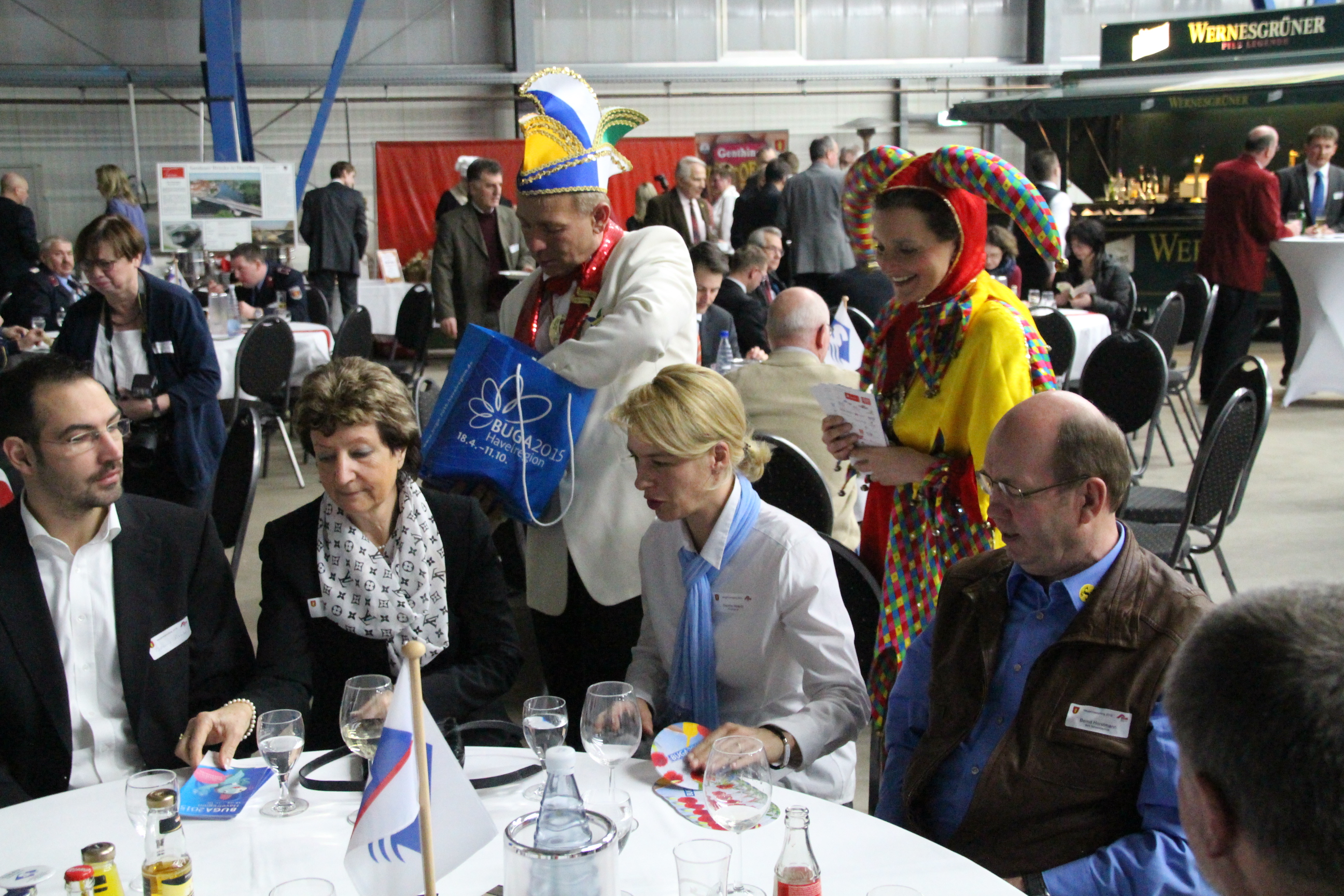 Im Rahmen des gestrigen Neujahrsempfanges der Stadt Genthin, zu dem Bürgermeister Thomas Barz und die Geschäftsführerin der Städtischen Wohnungsgesellschaft Genthin mbH, Angelika Domsgen, eingeladen hatten, nutzte Oberbürgermeisterin und Vorsitzende des BUGA-Zweckverbandes Dr. Dietlind Tiemann in Ihrer kurzen Ansprache die Gelegenheit, für die am 18.04.2015 beginnende Bundesgartenschau zu werben. Unterstützt wurde Sie dabei vom Brandenburger Karnevals Club BKC, der auf seine ganz eigene närrische Art Informationsmaterial zur BUGA 2015 verteilte.