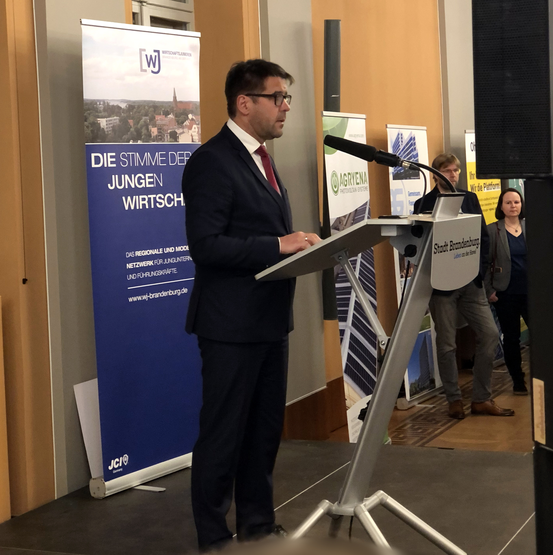 Anlässlich des Neujahrempfangs der Wirtschaftsjunioren Brandenburg an der Havel am Mittwoch, 4. Januar 2023, im Rolandsaal zog Oberbürgermeister Steffen Scheller mit seinen Worten eine rückblickende Bilanz aus dem Jahr 2022.