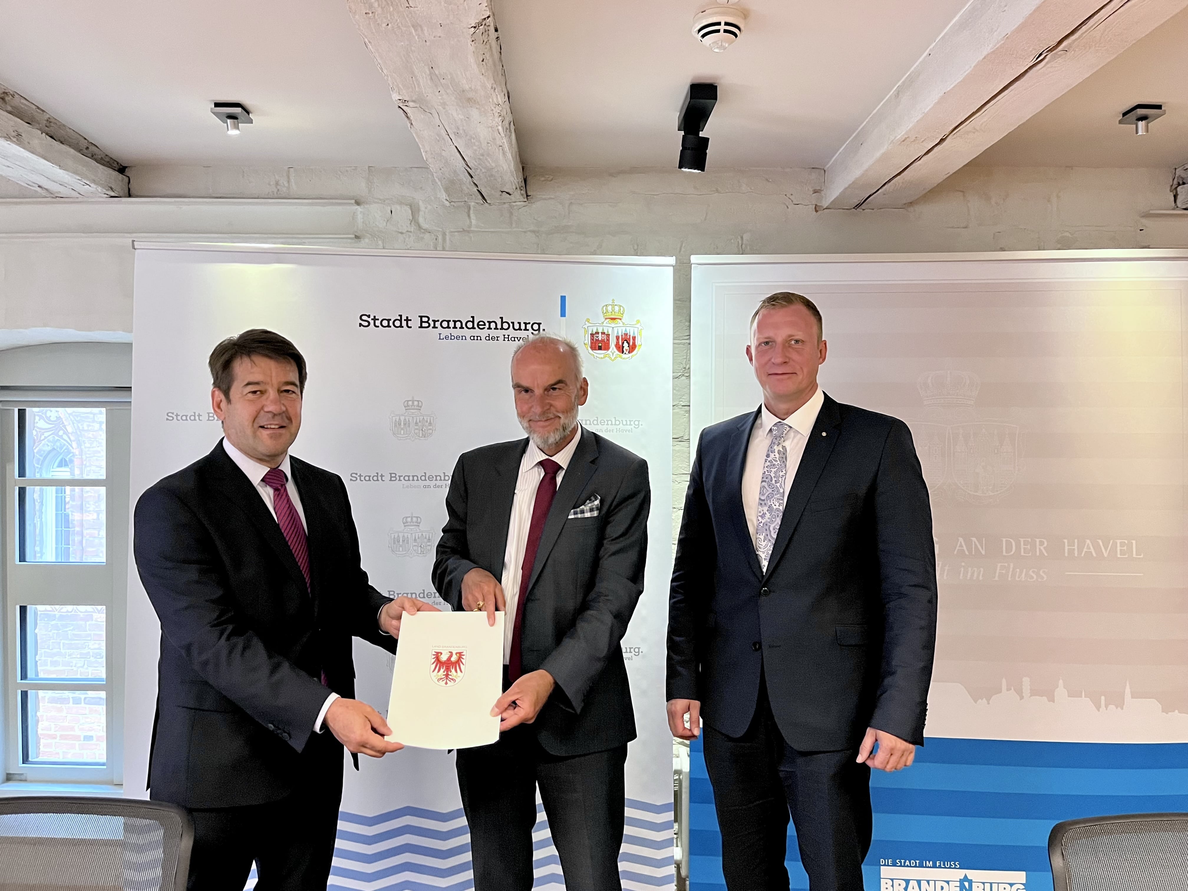 Im Juli 2019 haben Oberbürgermeister Steffen Scheller und der damalige Innenminister des Landes Brandenburg Karl-Heinz Schröter im Altstädtischen Rathaus die Konsolidierungsvereinbarung zur Teilentschuldung unterzeichnet.
