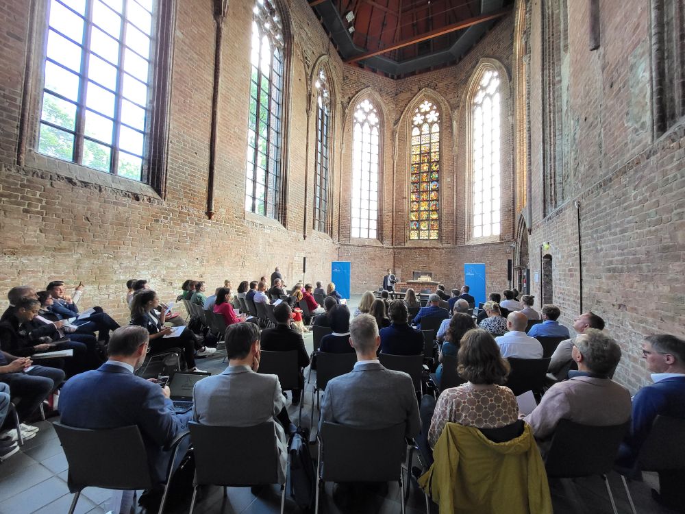 Im Rahmen eines Workshops unter dem Titel "Zuzug nach Brandenburg: Chance und Herausforderung“ des Landes Brandenburg am Donnerstag, 6. Juli 2023, begrüßte Oberbürgermeister Steffen Scheller die Teilnehmerinnen und Teilnehmer im Paulikloster. Oberbürgermeister Steffen Scheller: