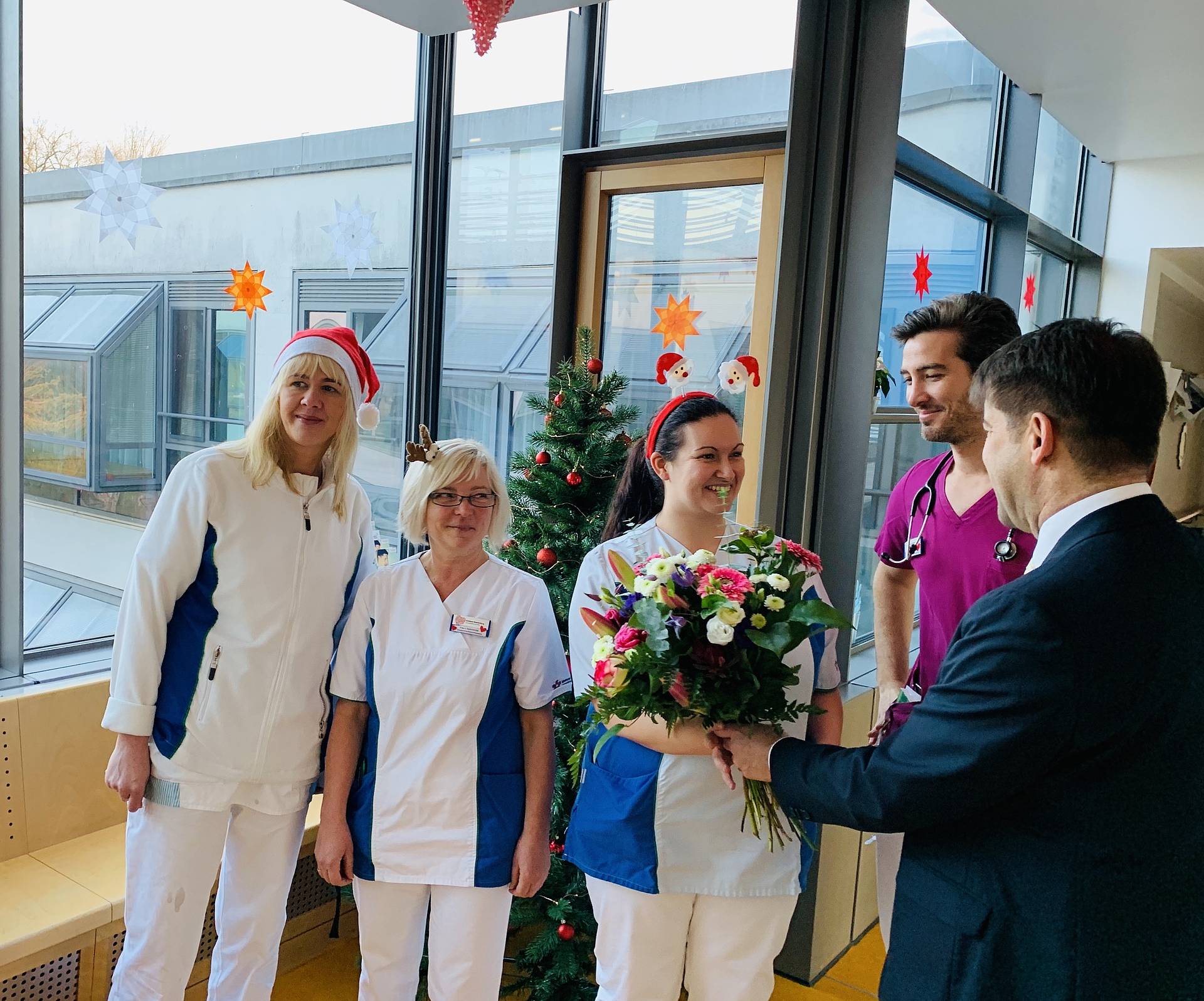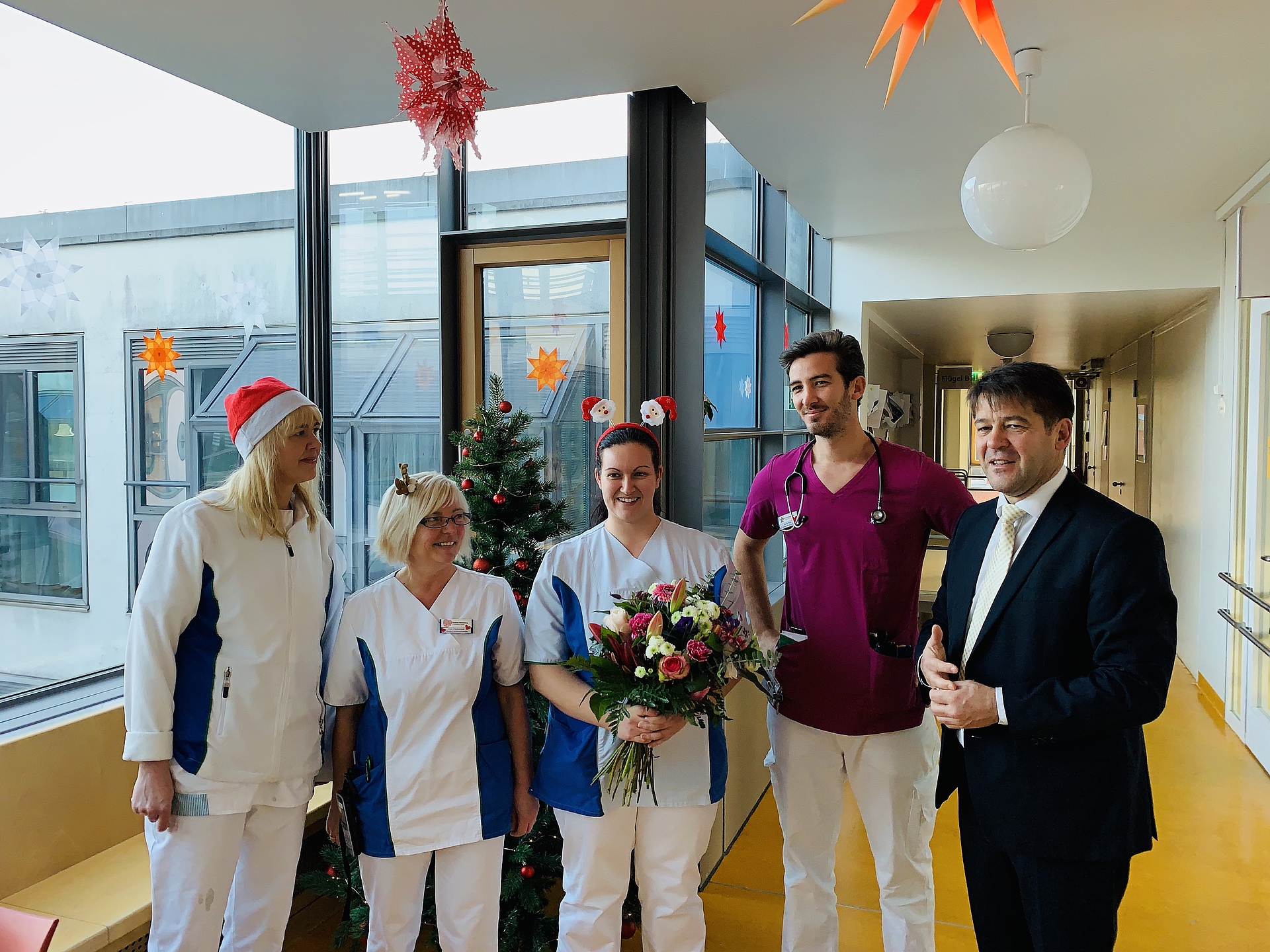Bei seinem traditionellen Weihnachtsbesuch in der Kinderklinik des städtischen Klinikums und der Feuerwehr sagt Oberbürgermeister Steffen Scheller: