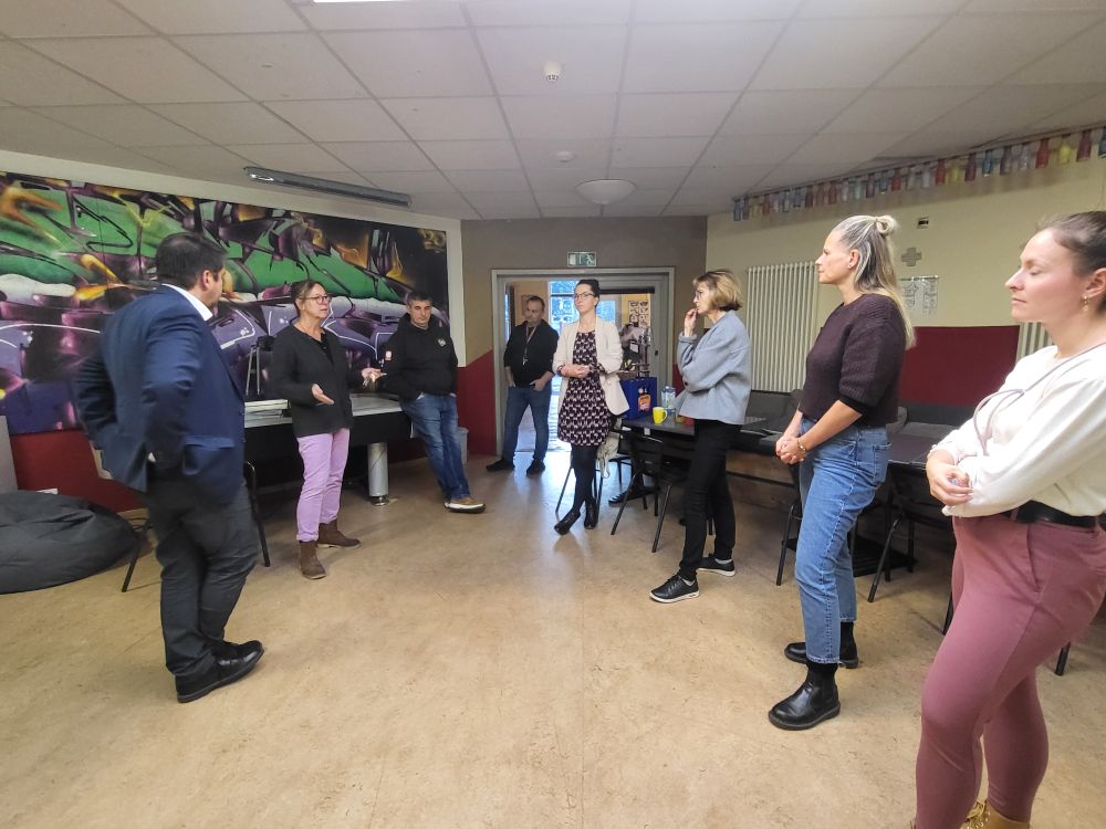 Steffen Scheller mit der Jugendbeigeordneten Alexandra Adel im Gespräch mit der Leiterin des CaT.