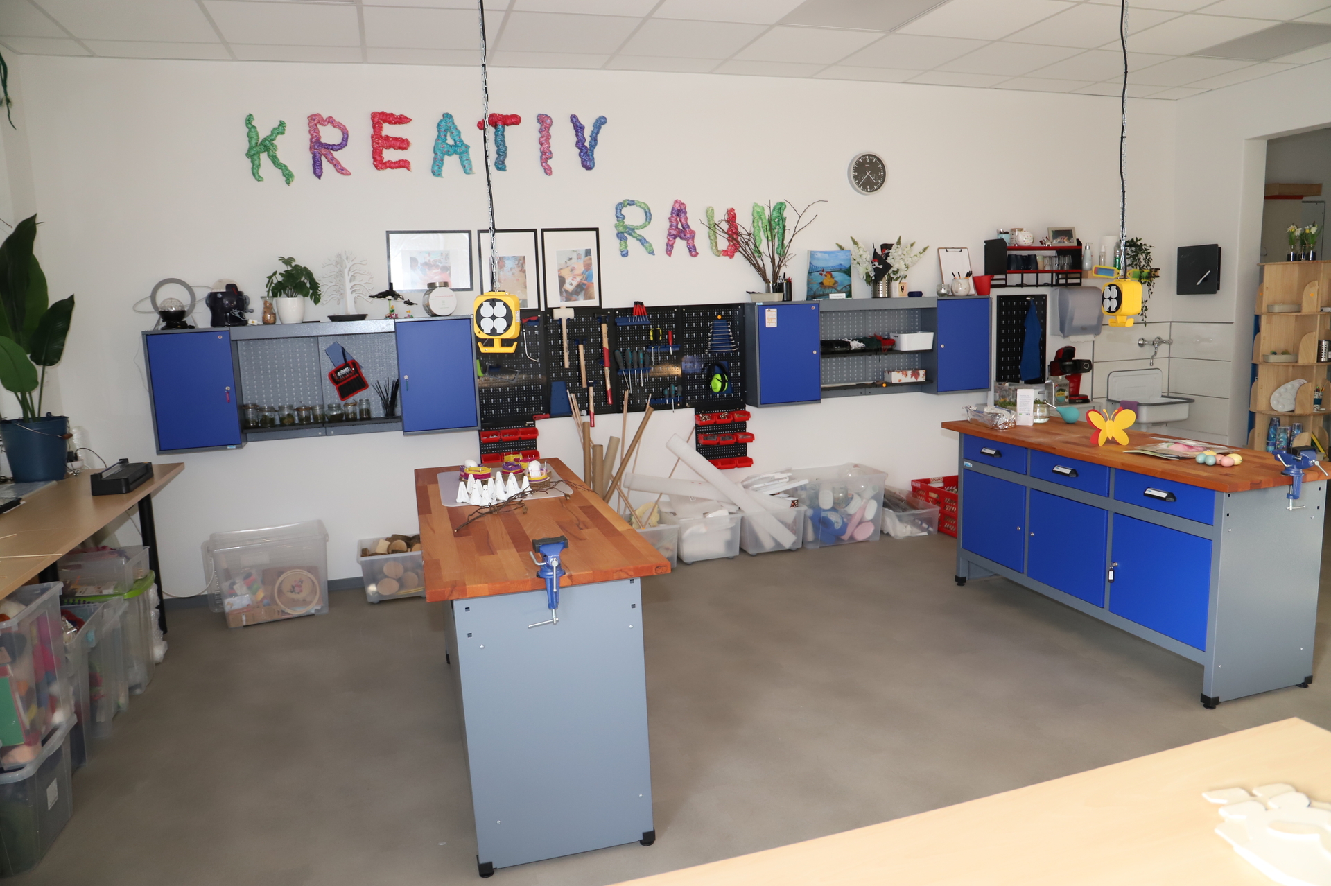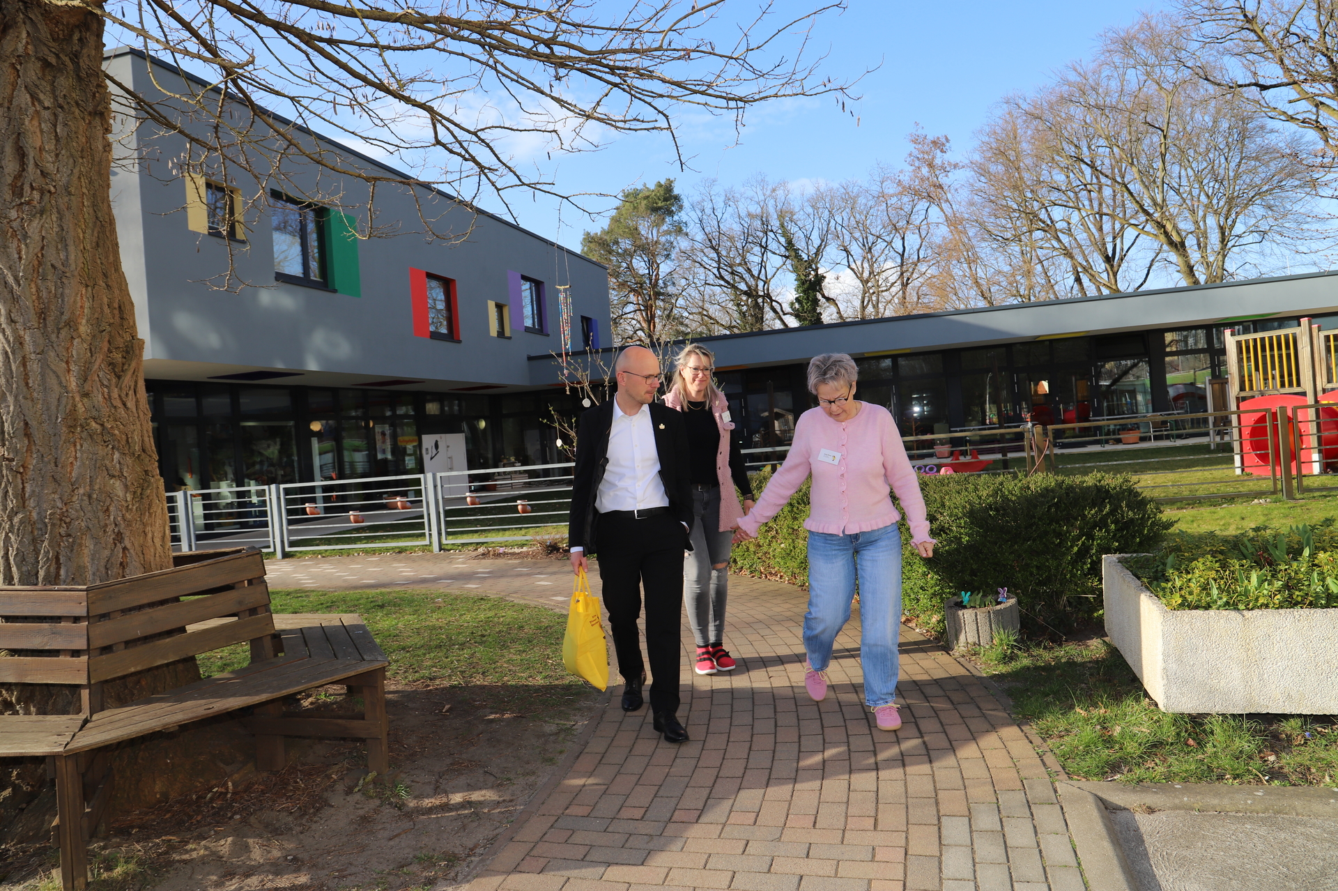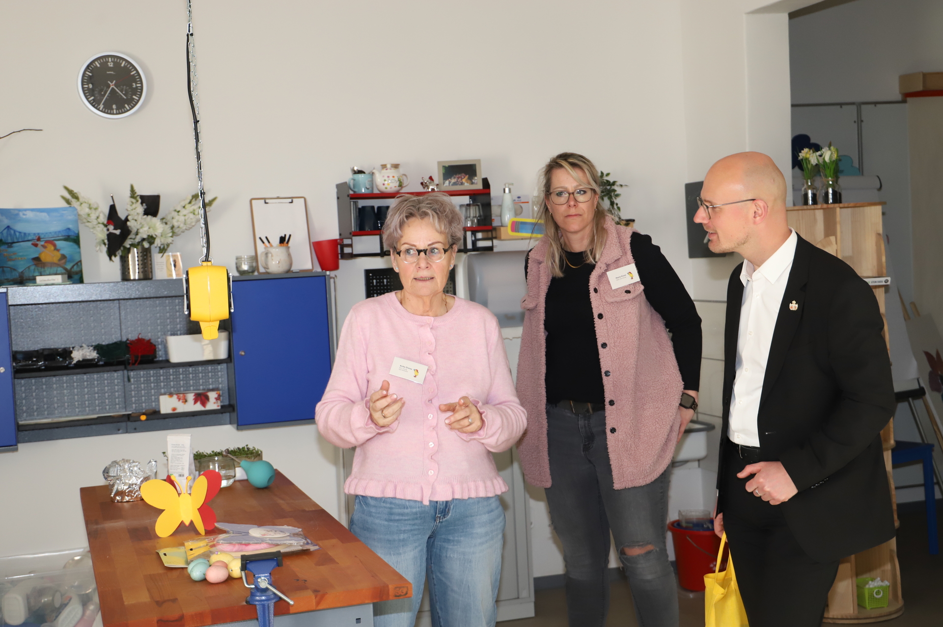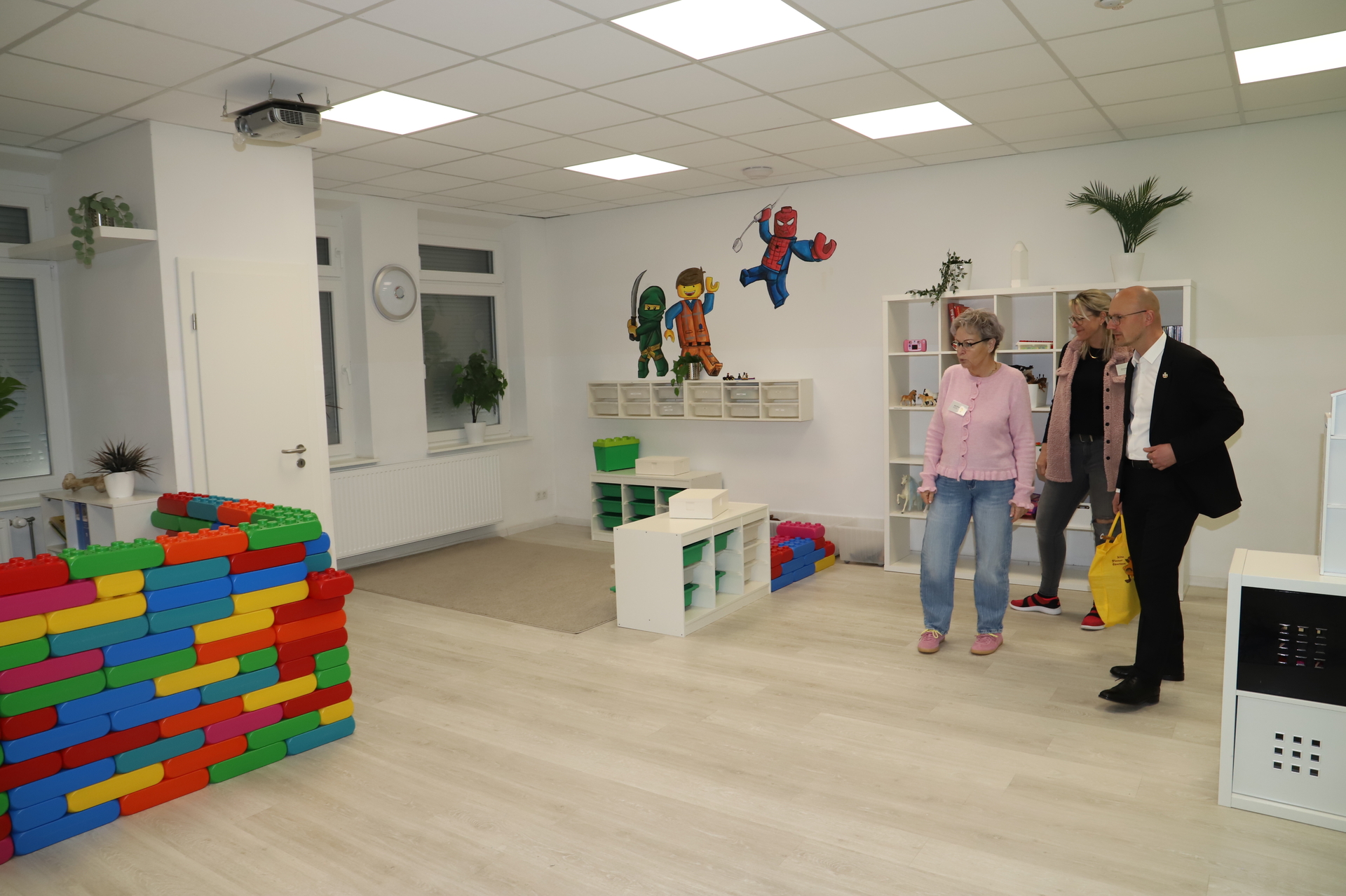 Daniel Keip erhielt Einblicke in den Alltag der Kinder. Er beobachtete eine Yogastunde, probierte sich beim Bauen mit großen Legosteinen und besuchte den hauseigenen Hasenbereich. Die Angebote orientieren sich am Bedarf der Kinder. Dazu gehören unter anderem eine Relaxhöhle, ein Puppenspielbereich, ein Hausaufgabenraum für Hortkinder und eine Bastelwerkstatt. Dort entstehen derzeit Ostergeschenke.