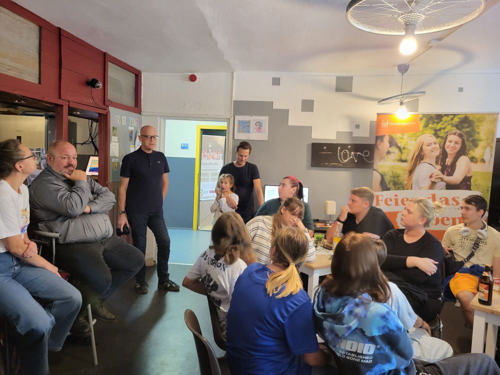Zu Beginn stellte Axel Krause, Leiter des KiJu, die Einrichtung sowie die Arbeit des Betreibers, dem Humanistischen Regionalverband, vor. Im Anschluss informierte die städtische Kinder- und Jugendbeauftragte Janne Engeleiter über den geplanten Wahl-O-Mat zur Oberbürgermeisterwahl im November und kündigte weitere Informationen bis Ende September an.